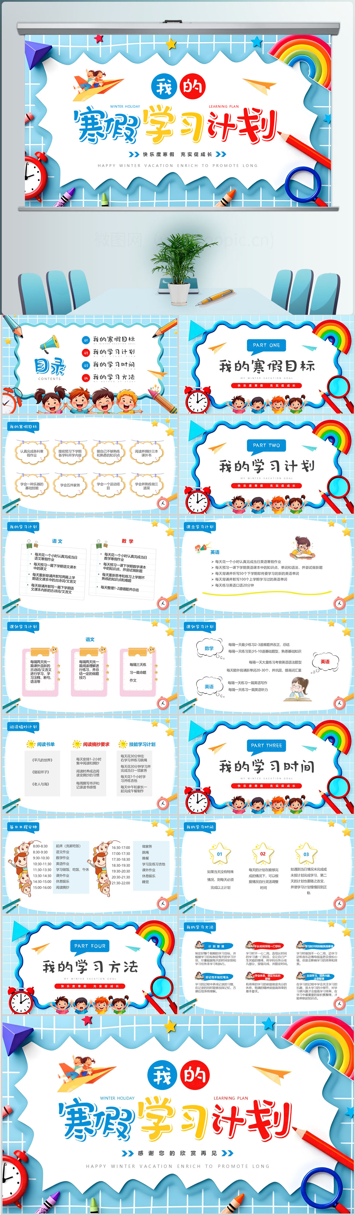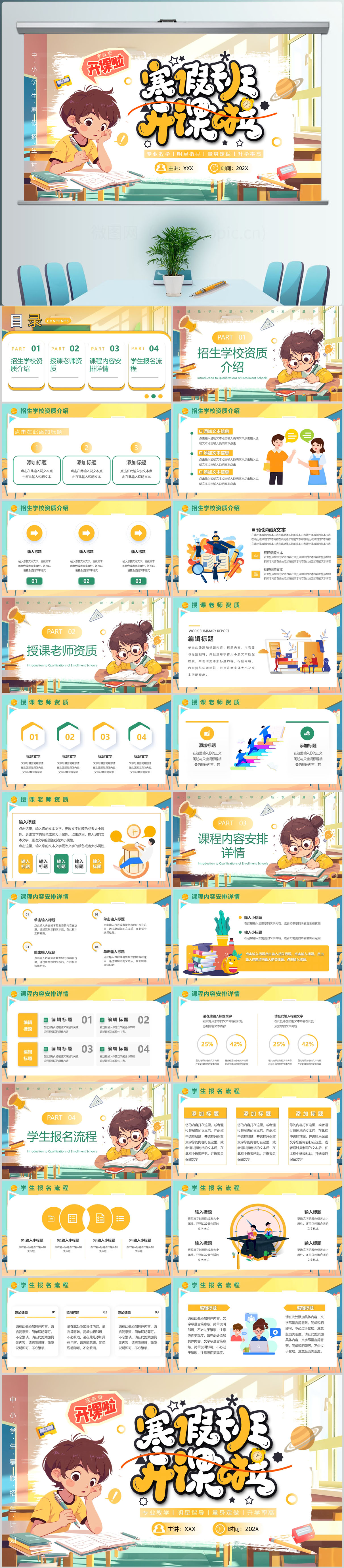 卡通寒假开课了寒假招生培训宣传课件ppt模板