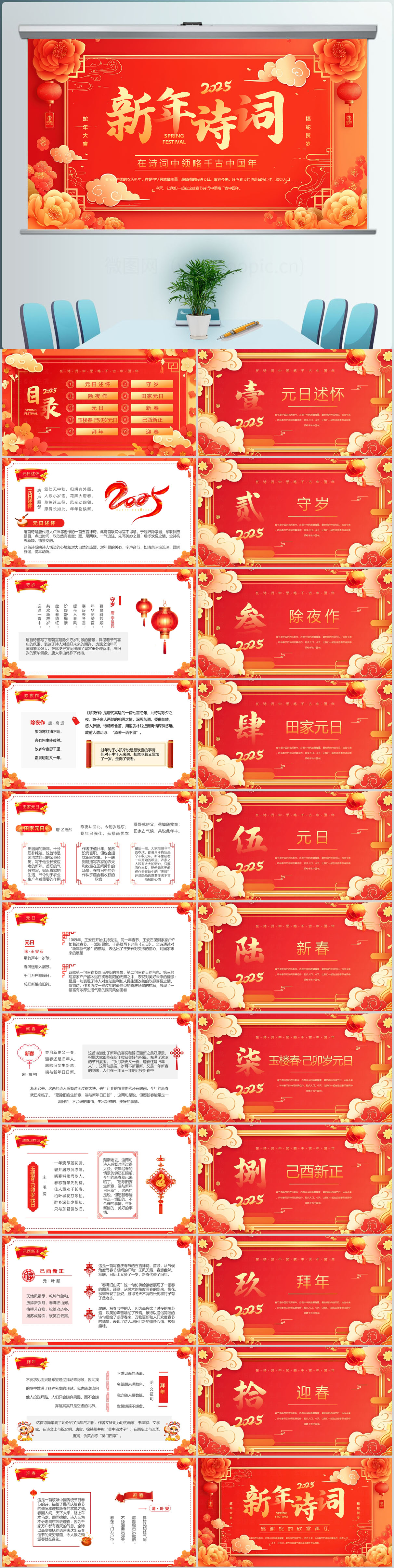 2025蛇年春节元宵节活动策划通用PPT模板设计