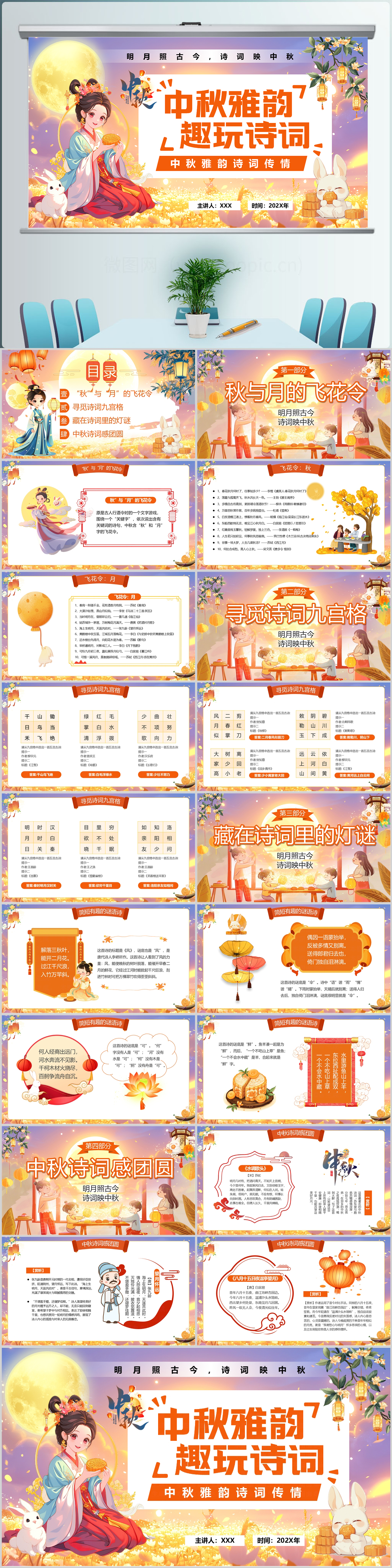 2025中秋节诗歌朗诵主题班会课件教育ppt模板