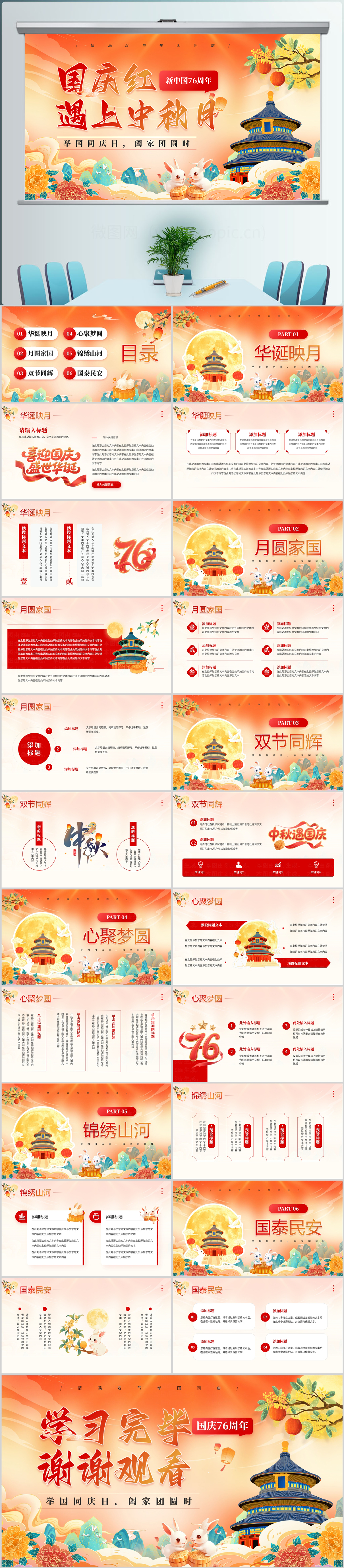 2025庆国庆迎中秋国庆76周年通用ppt模板