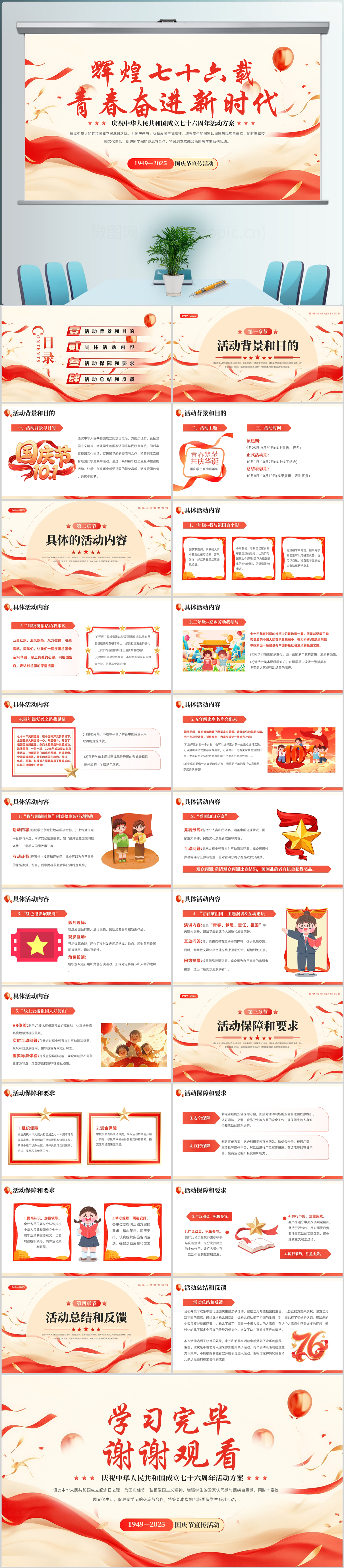 红色庆祝中华人民共和国成立七十六周年活动方案ppt模板
