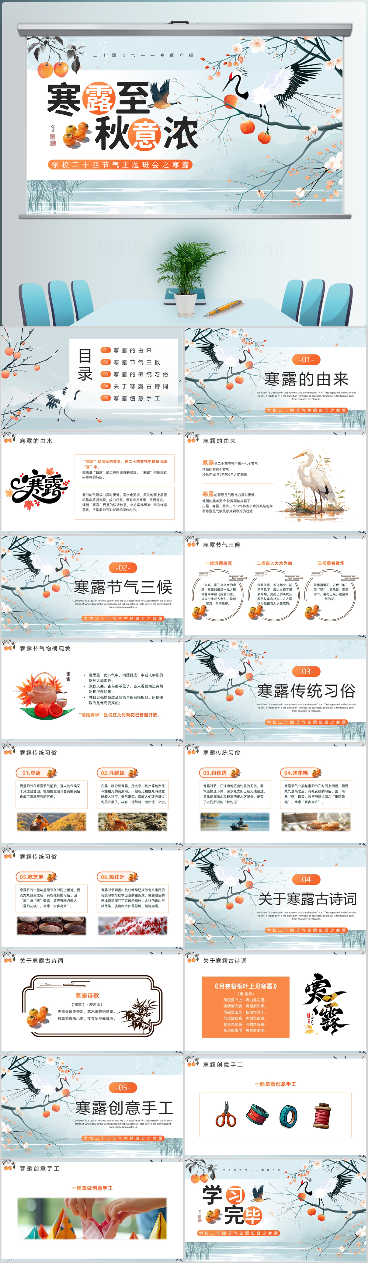 绿色简约风二十节日寒露节气班会PPT模板