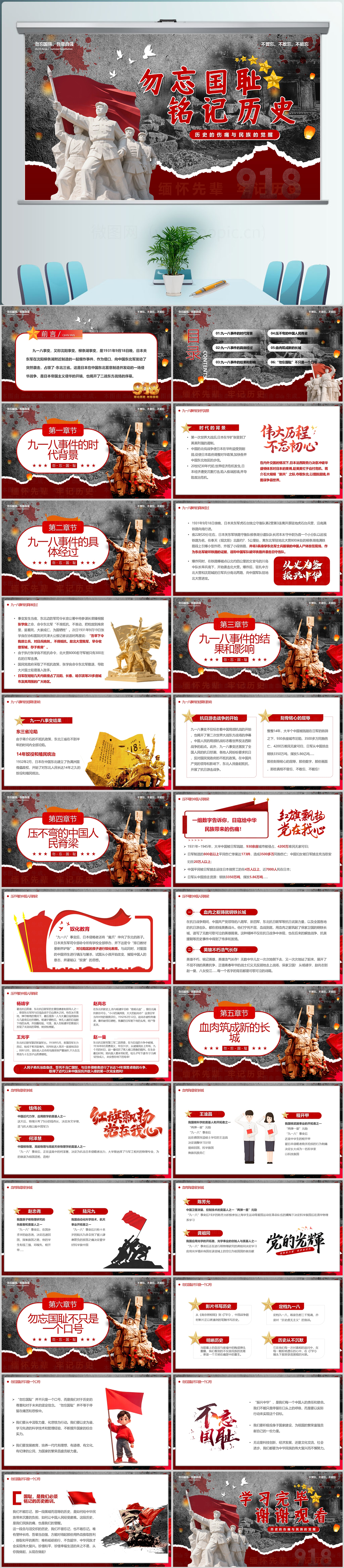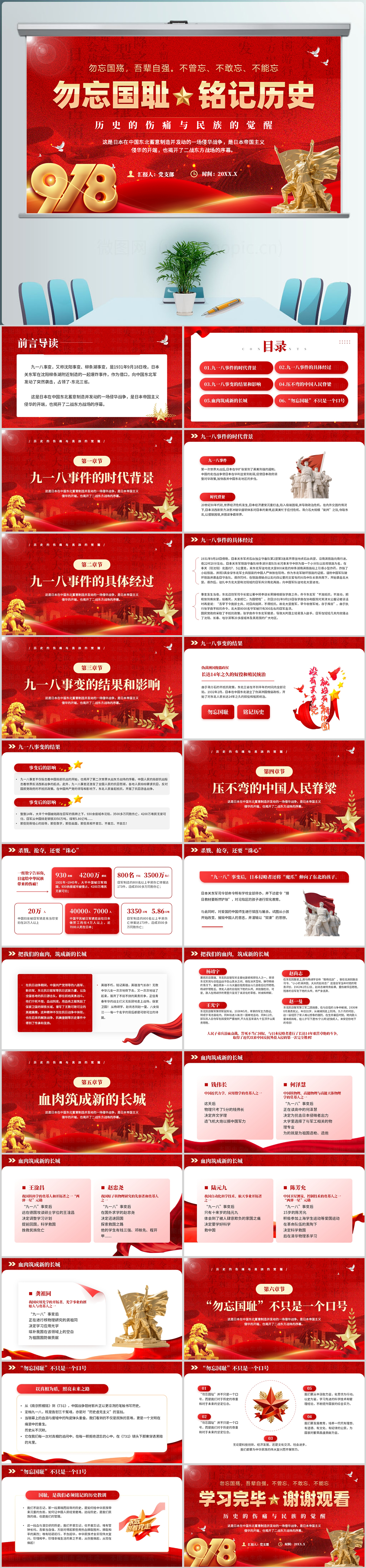 红色风格勿忘国耻铭记历史九一八专题课件ppt模板