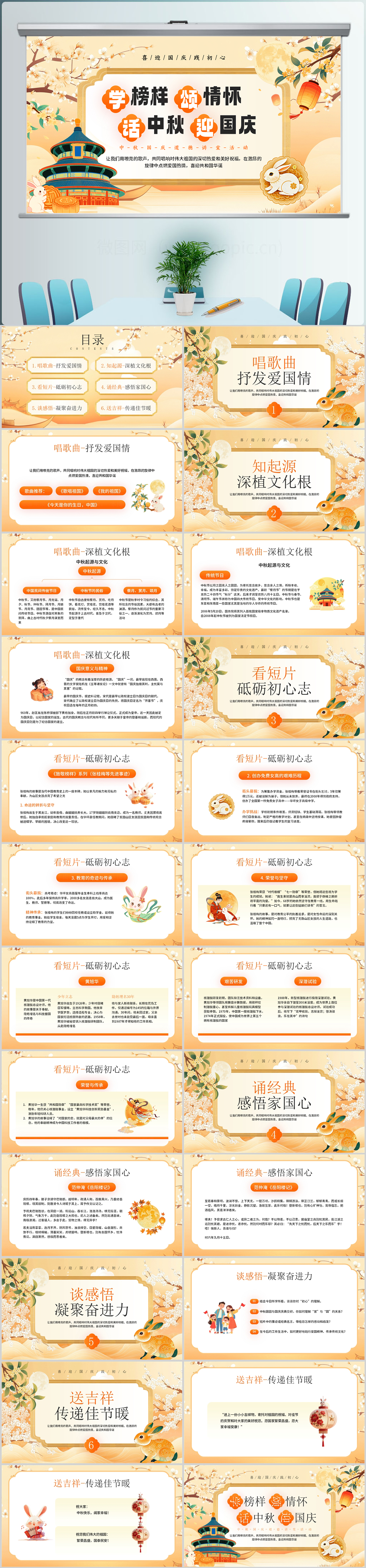 学榜样颂情怀话中秋迎国庆节日专题课件ppt模板