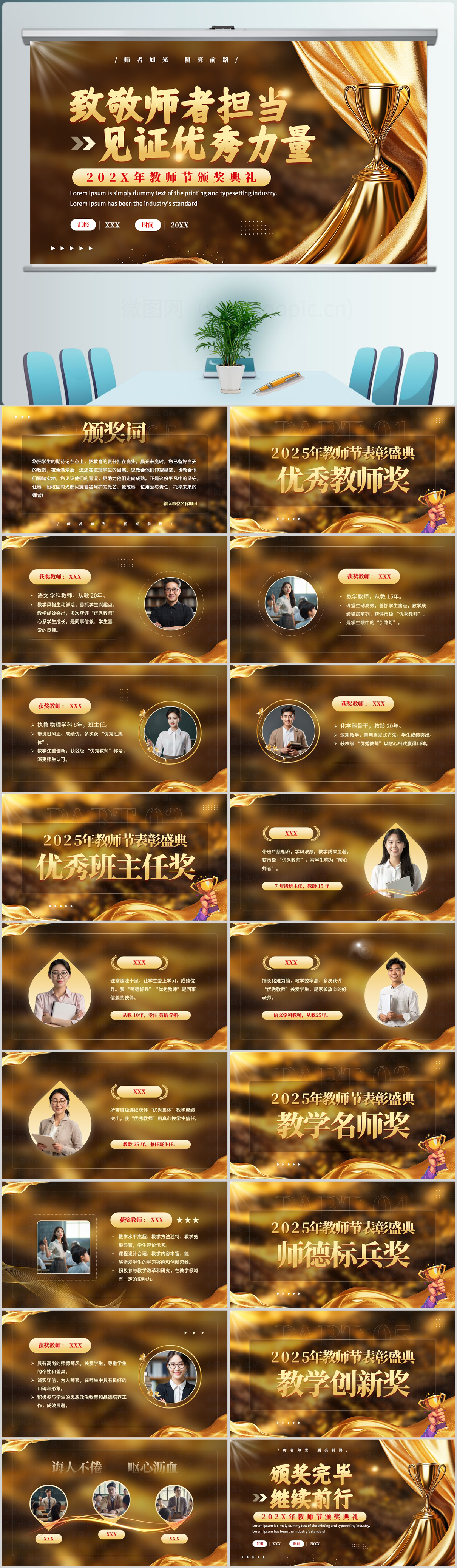 金色大气教师节颁奖典礼表彰大会ppt模板