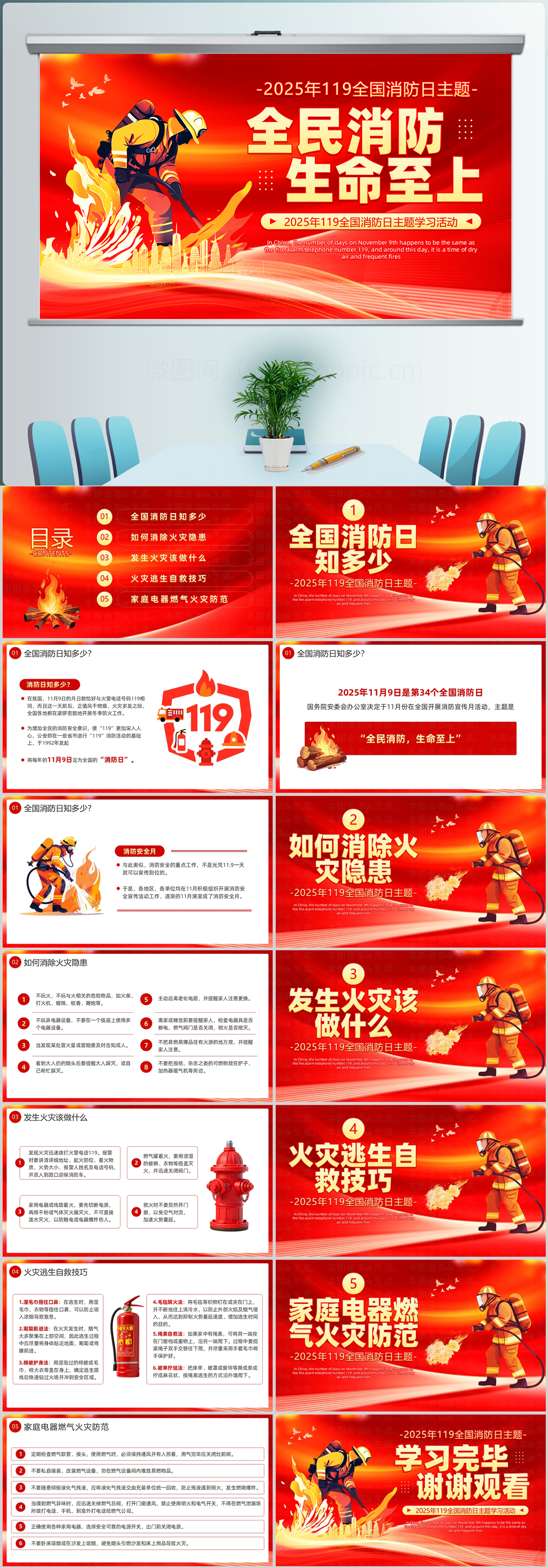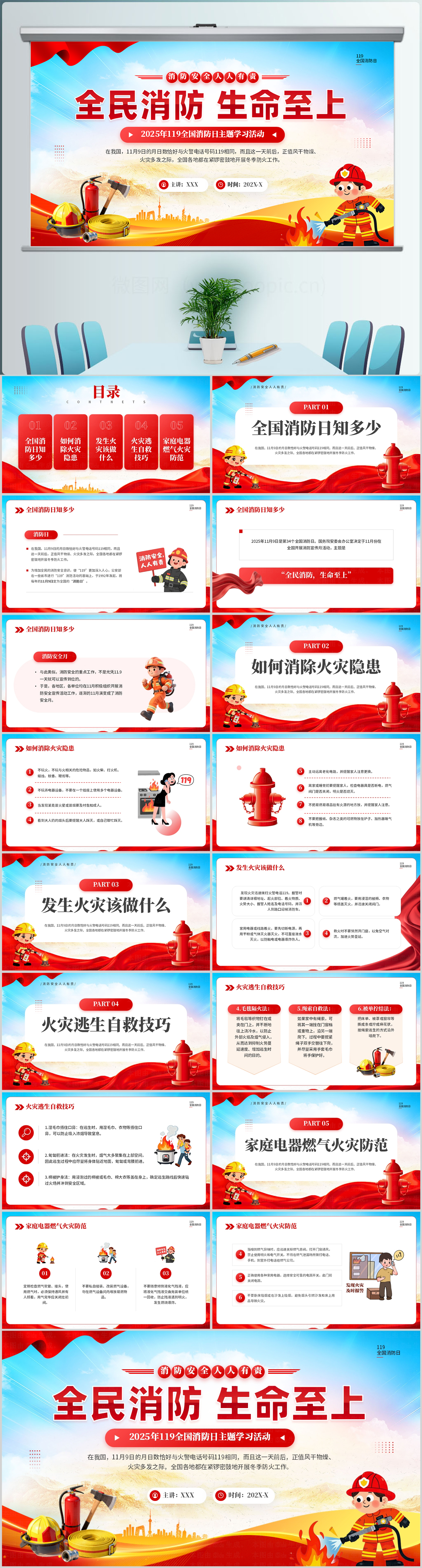 2025年119全国消防日全民消防生命至上主题学习ppt课件模板