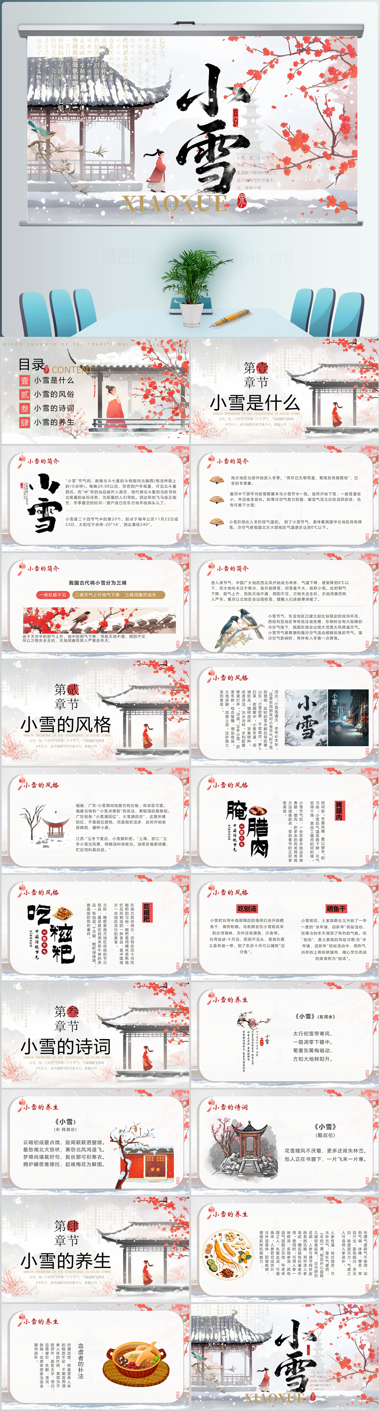 学习二十四节气之小雪介绍课件PPT模板