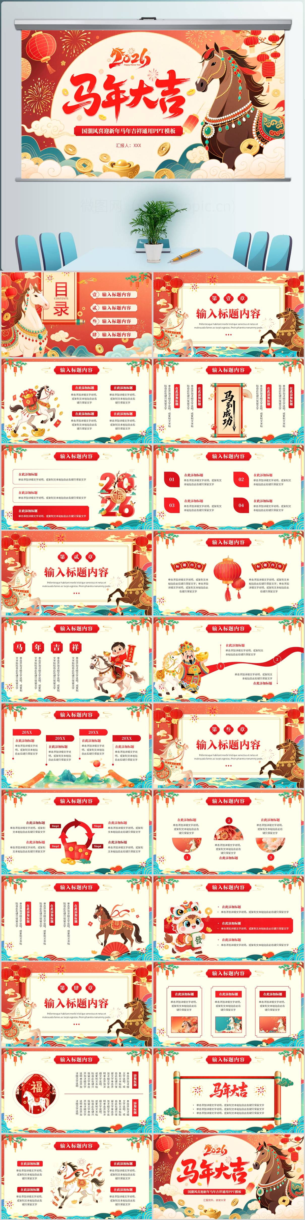 2026国潮风喜庆马年大吉工作汇报计划总结ppt模板