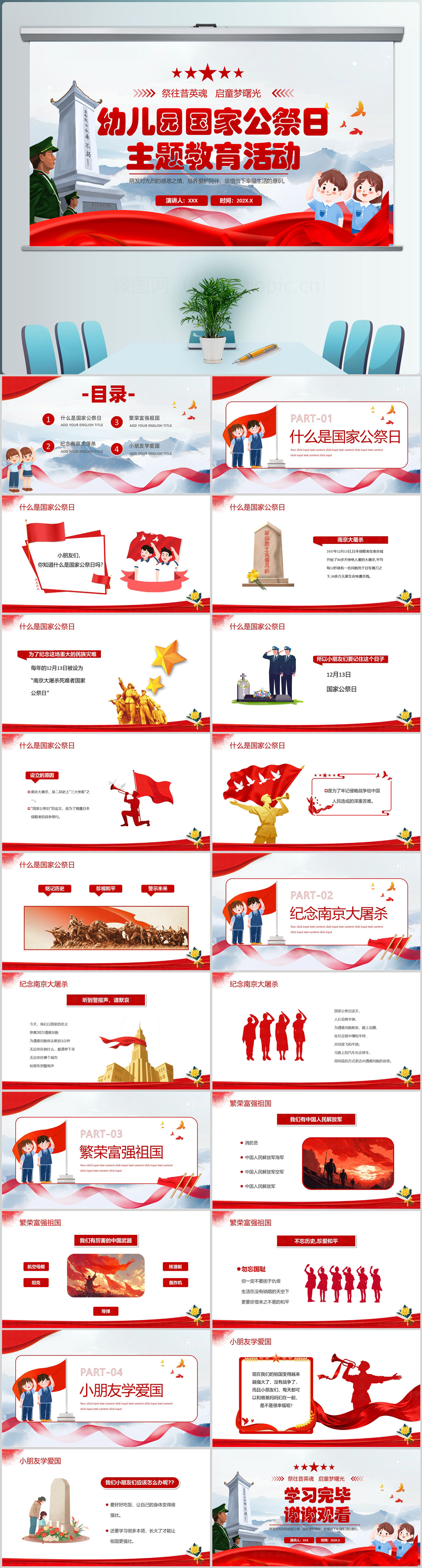 党政风幼儿园中小学生12.13国家公祭日ppt模板