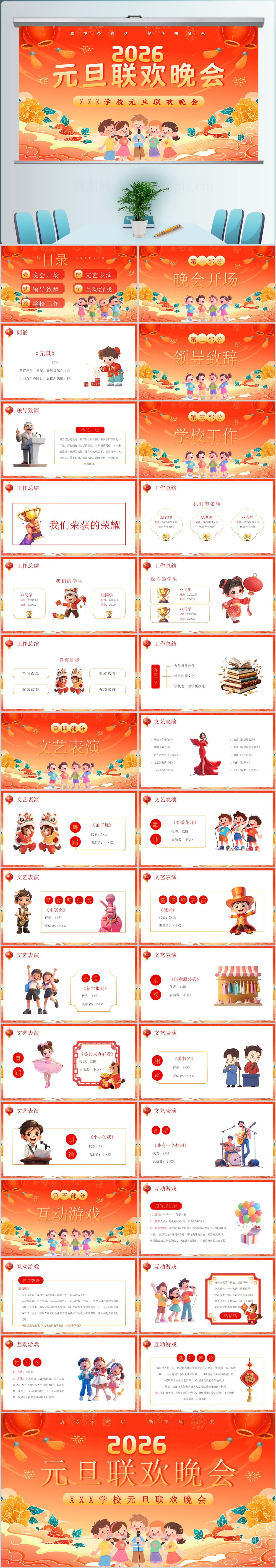 2026卡通学校元旦新年联欢晚会ppt模板