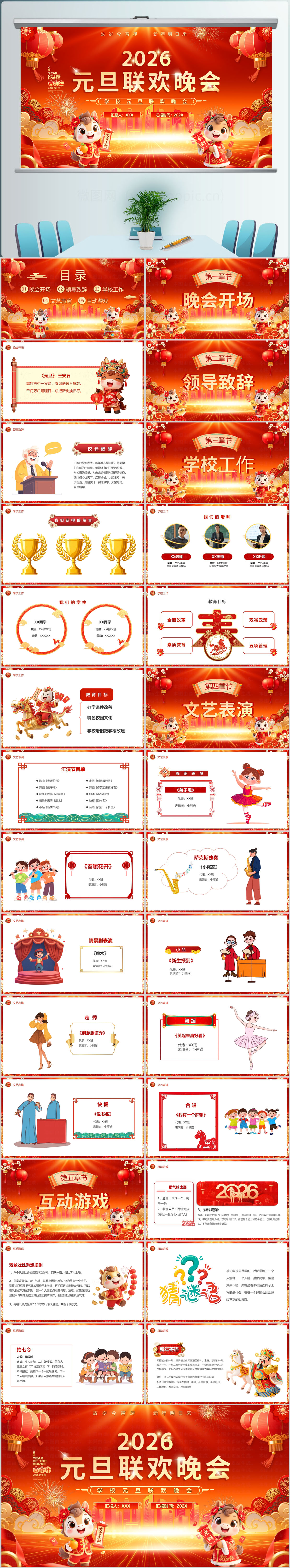 2026红色喜庆元旦联欢晚会ppt模板