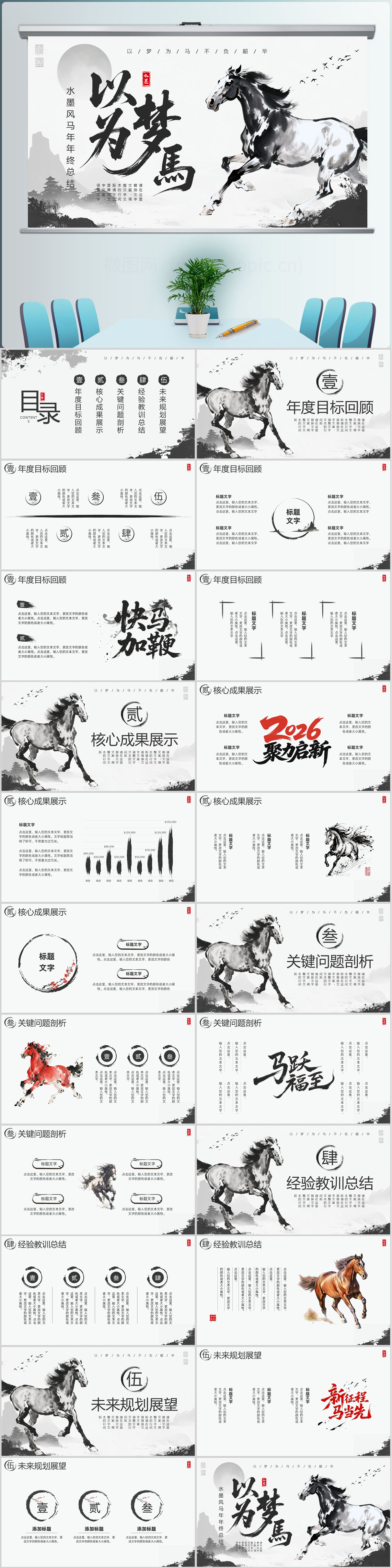 2026水墨中国风马年年终总结新年工作计划PPT模板