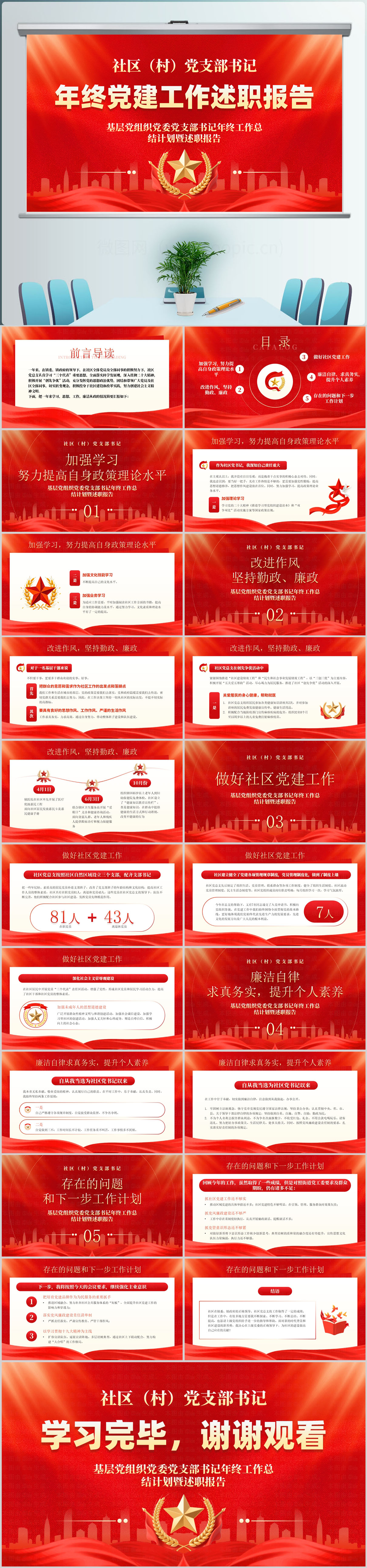 2026基层党委党支部书记年终工作总结计划暨述职报告ppt模板