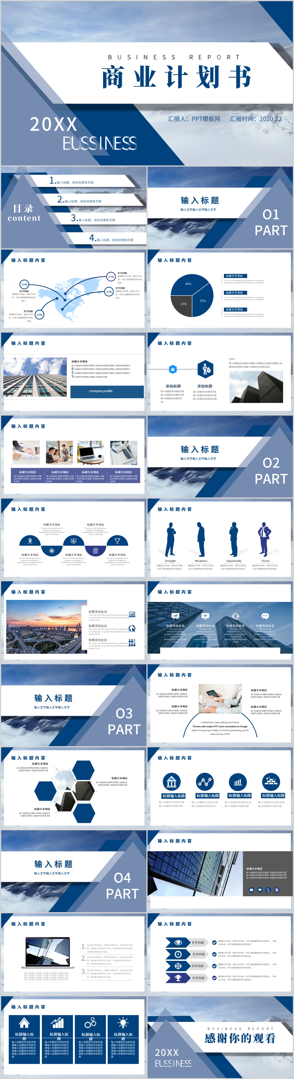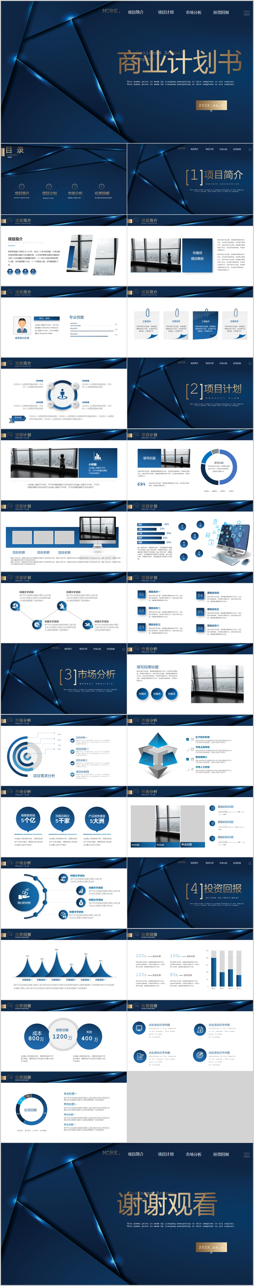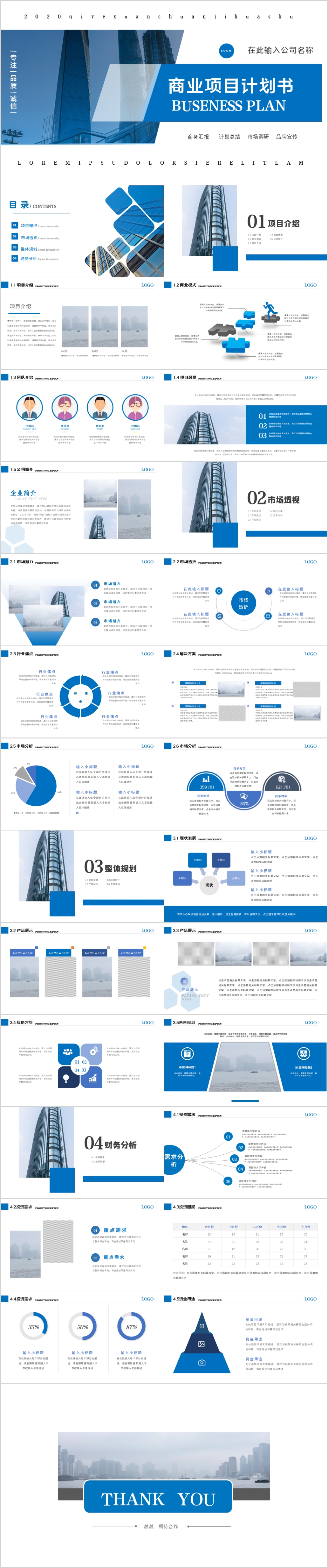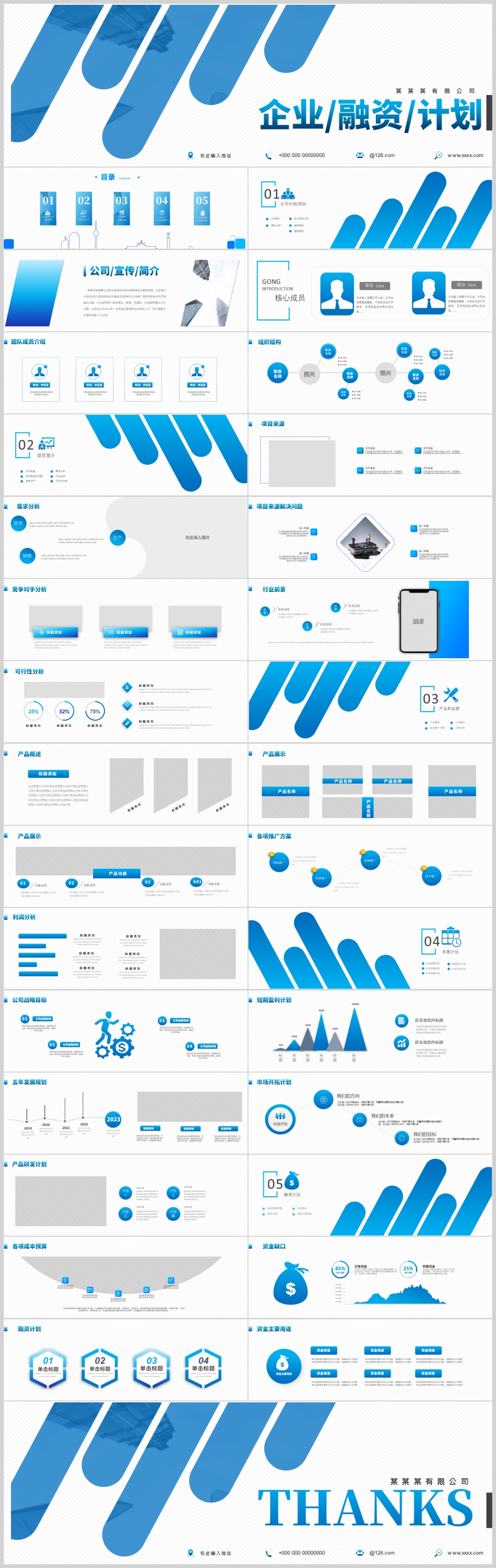 2021年潘通蓝商务风创业融资计划书PPT模板