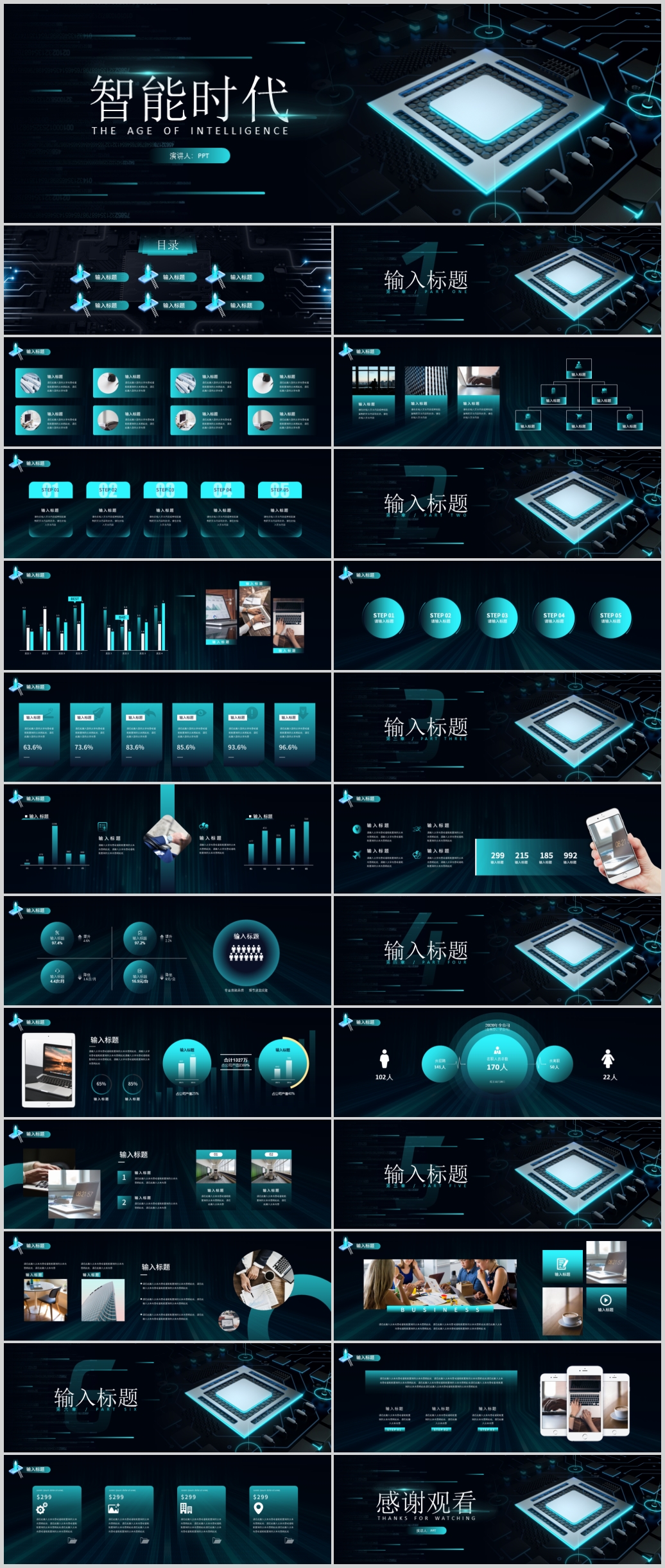 蓝色大气智能时代互联网商务通用宽屏PPT模板