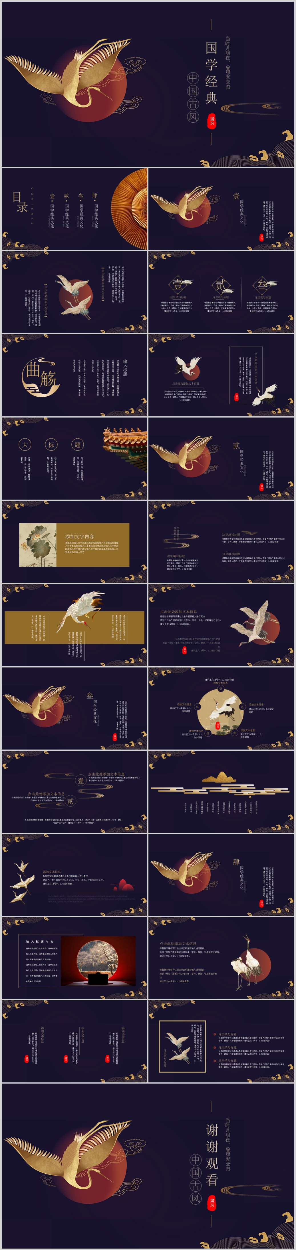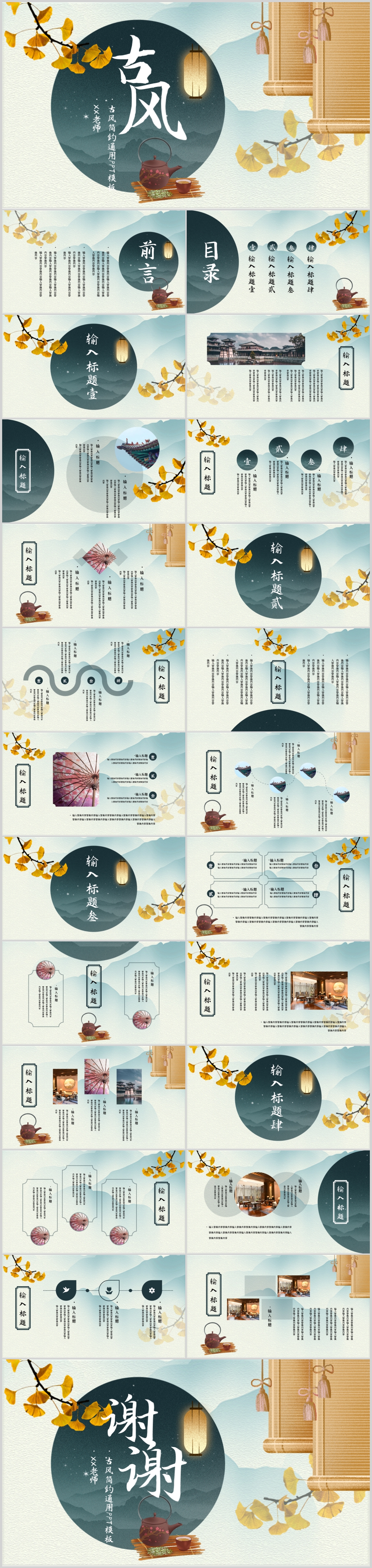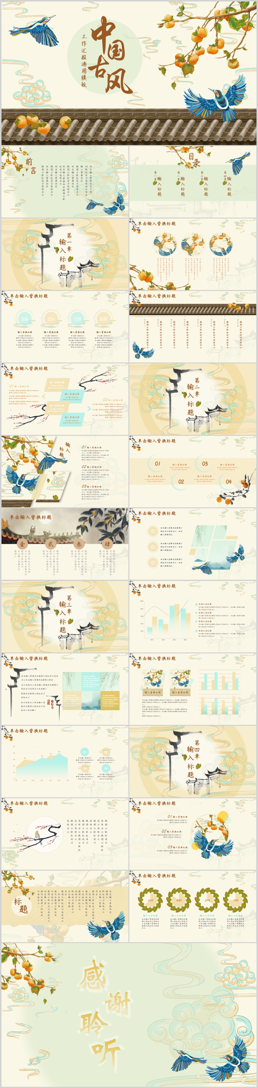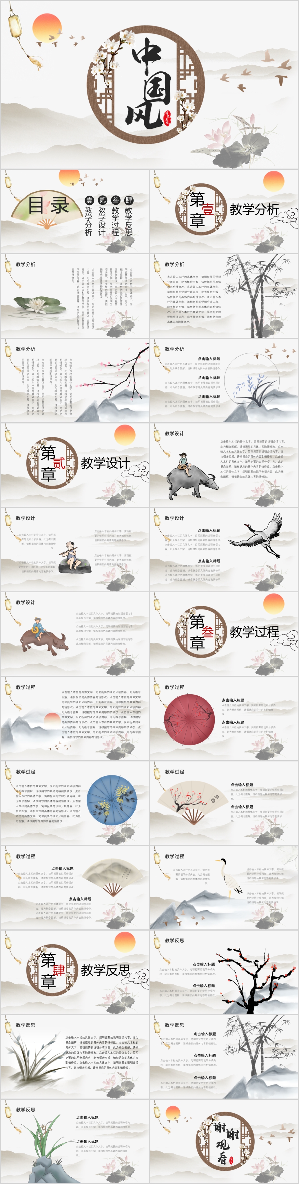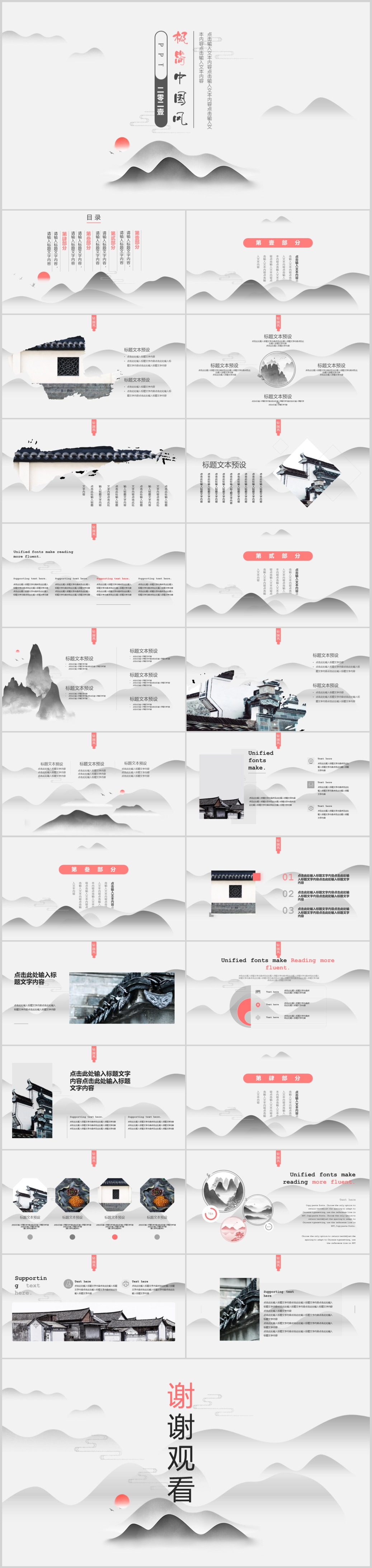 中国风水墨江南水乡古色古香古建筑通用PPT模板