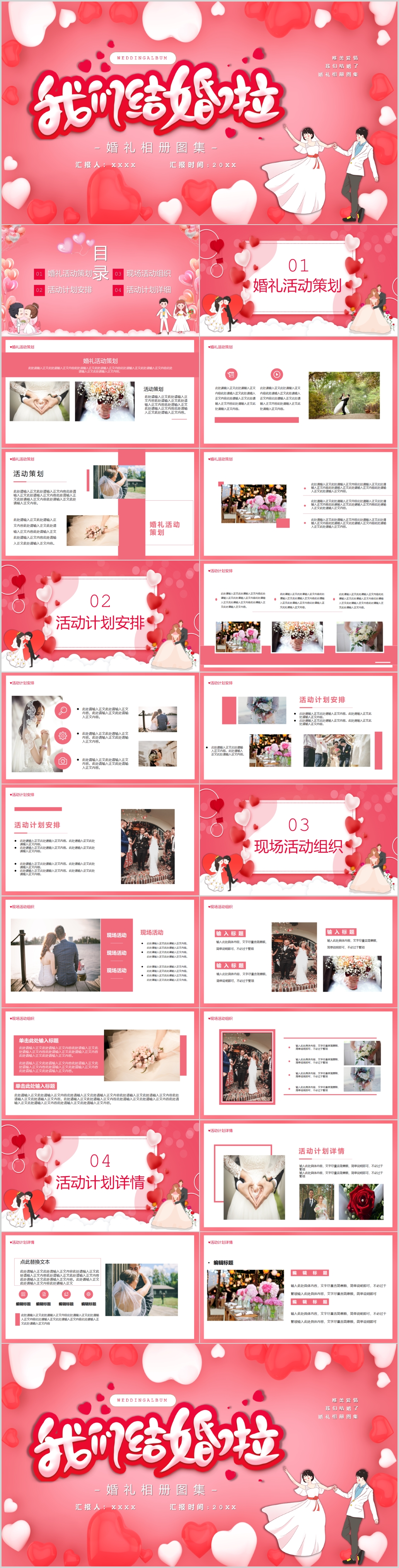 粉色浪漫我们的婚礼电子相册动态PPT模板