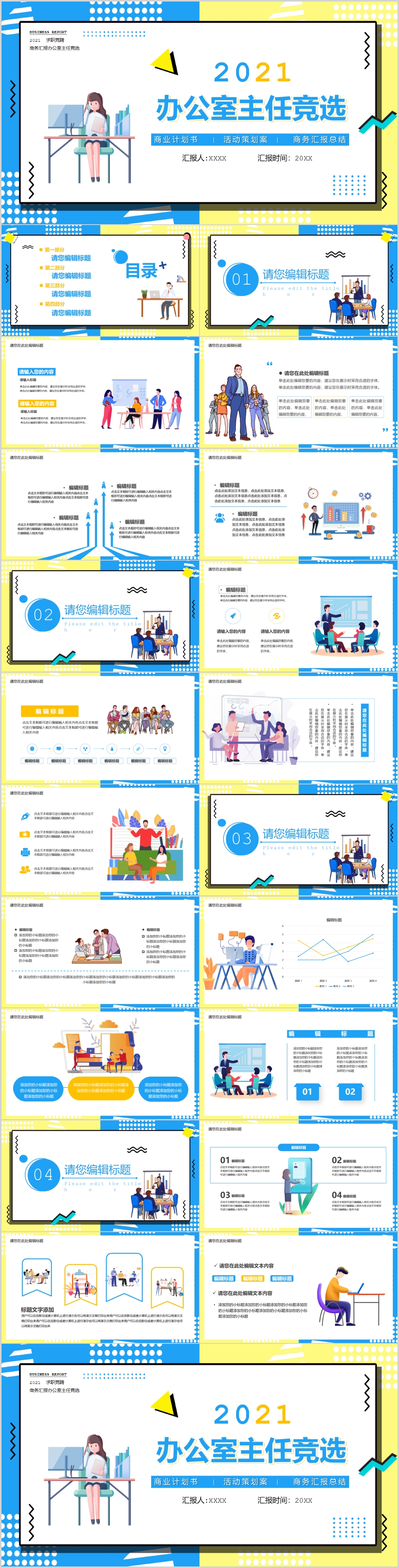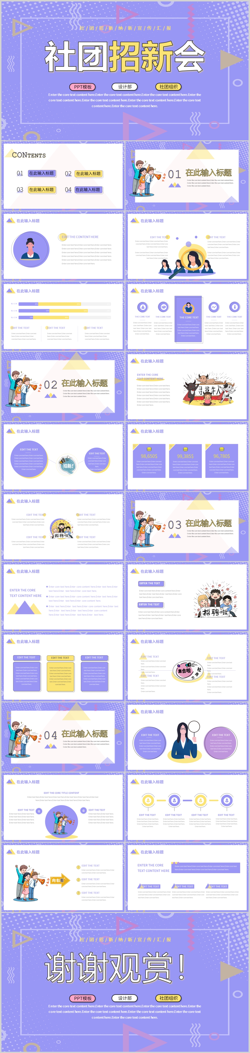 卡通扁平化社团招新PPT模板学生会招新活动宣传策划ppt模板