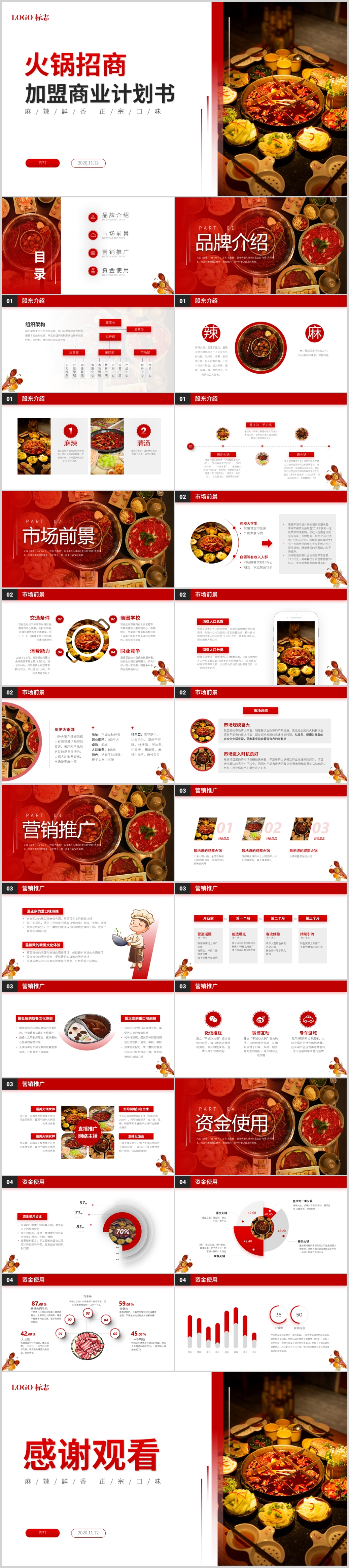 红色重庆火锅小吃餐饮连锁加盟舌尖上中国麻辣火锅PPT模板