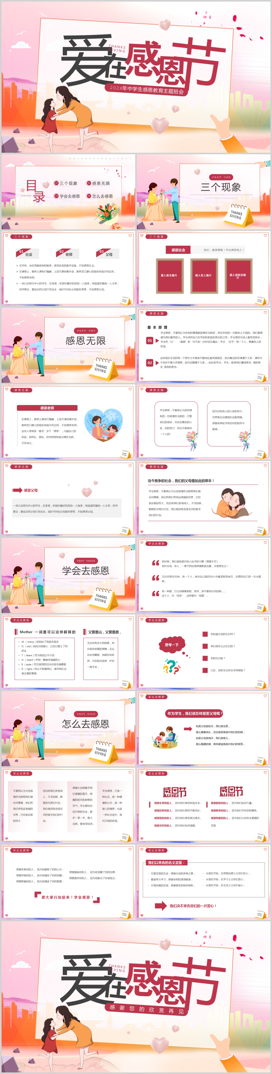 202X年中学生感恩教育主题班会PPT模板