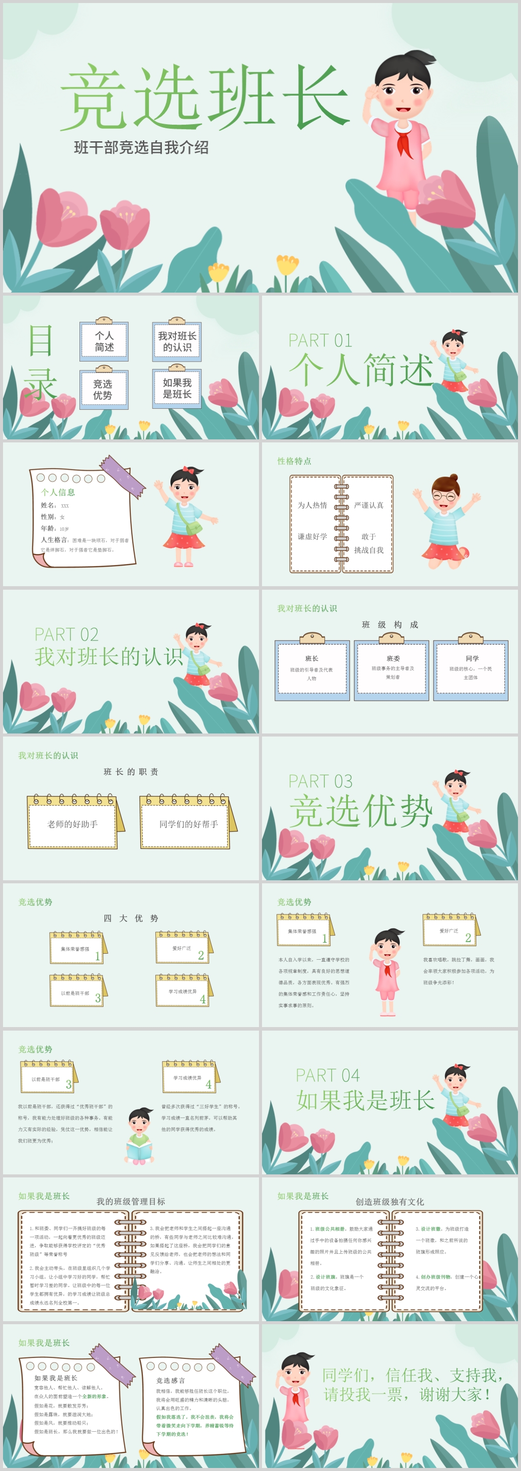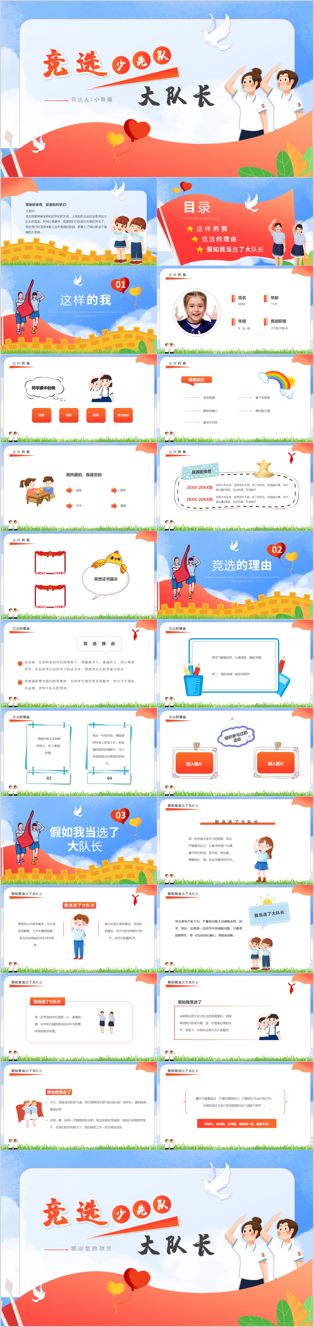 卡通少先队班干部竞选大队长竞选主题班会ppt模板