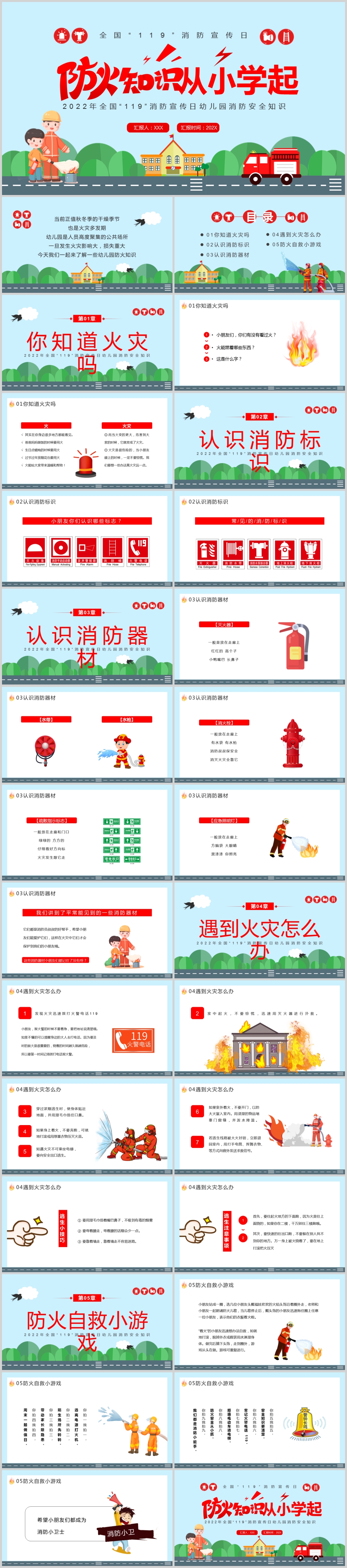 2022年119全国消防安全日校园消防安全教育主题班会ppt模板