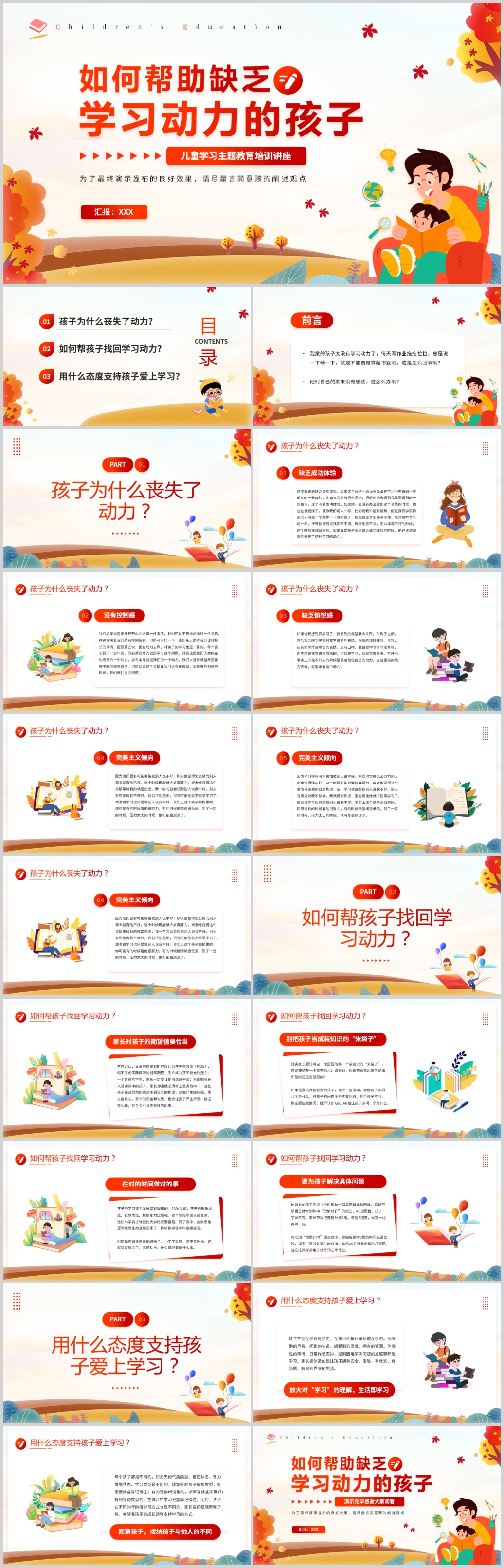 儿童学习主题教育培训讲座PPT模板