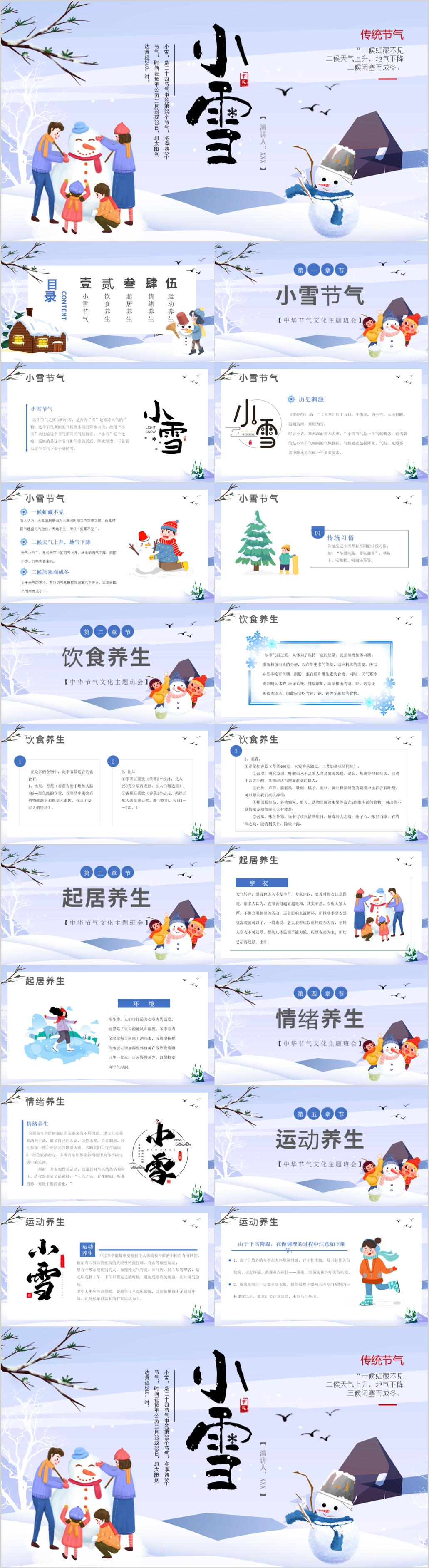 卡通二十四节气小雪大雪冬至小寒通用主题班会ppt模板