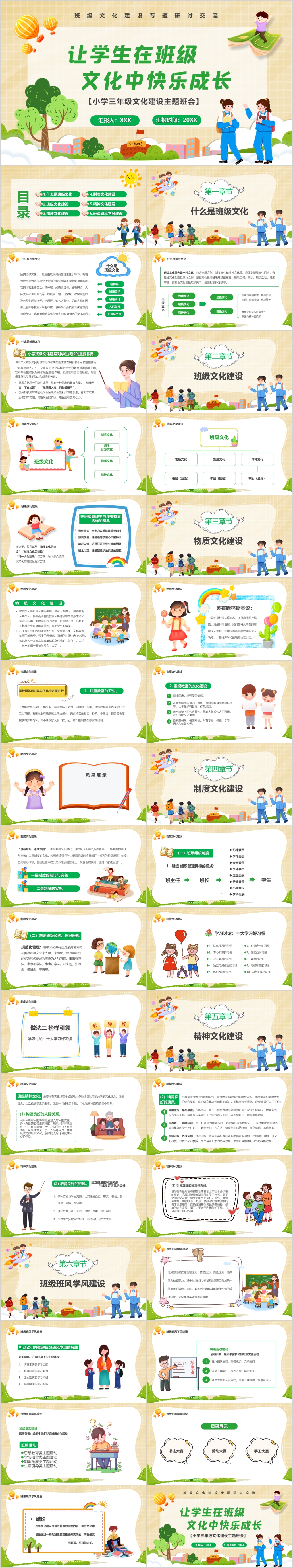 卡通中学生班级文化建设快乐成长主题班会ppt模板