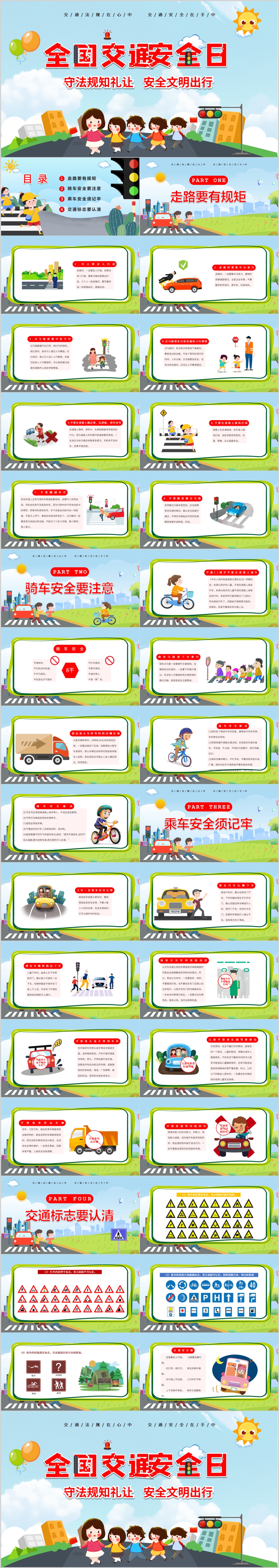 卡通全国交通安全宣传日交通安全主题宣传介绍课件PPT模板