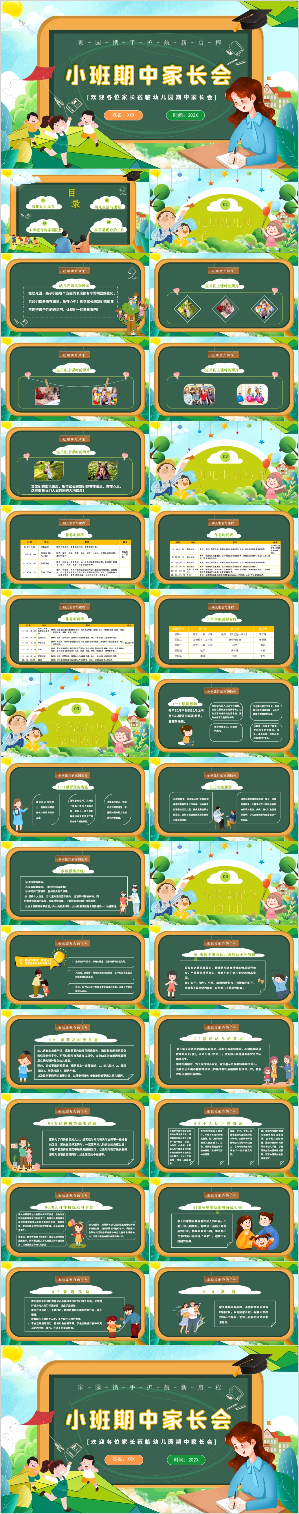 卡通黑板风格幼儿园期中期末考试家长会主题班会ppt模板