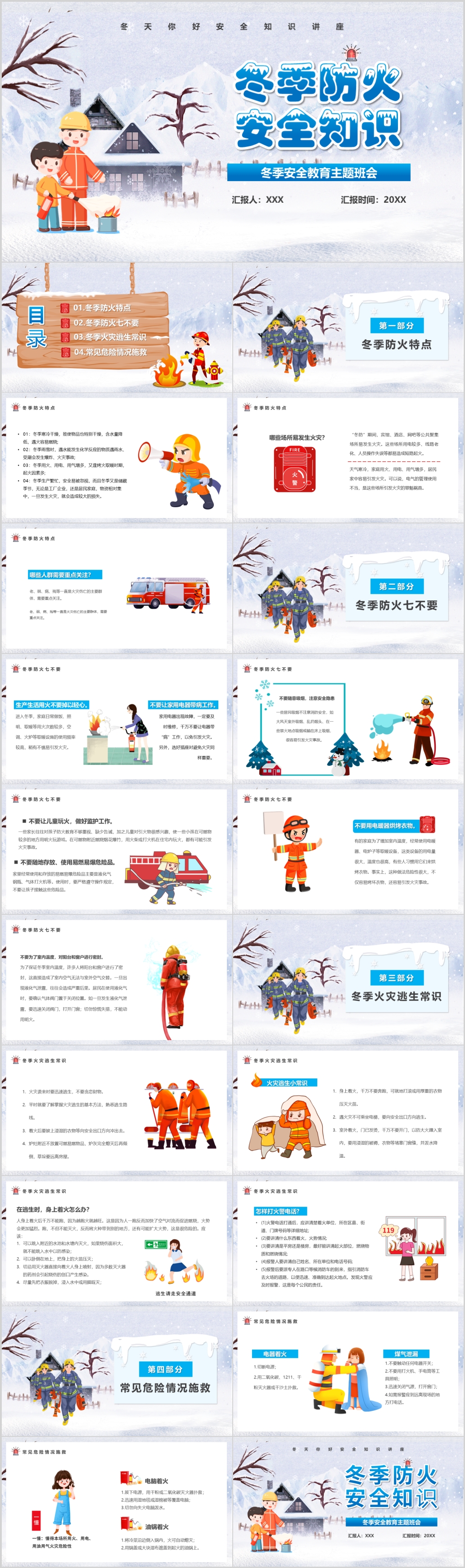 卡通风中小学冬季家庭防火安全教育主题班会ppt模板