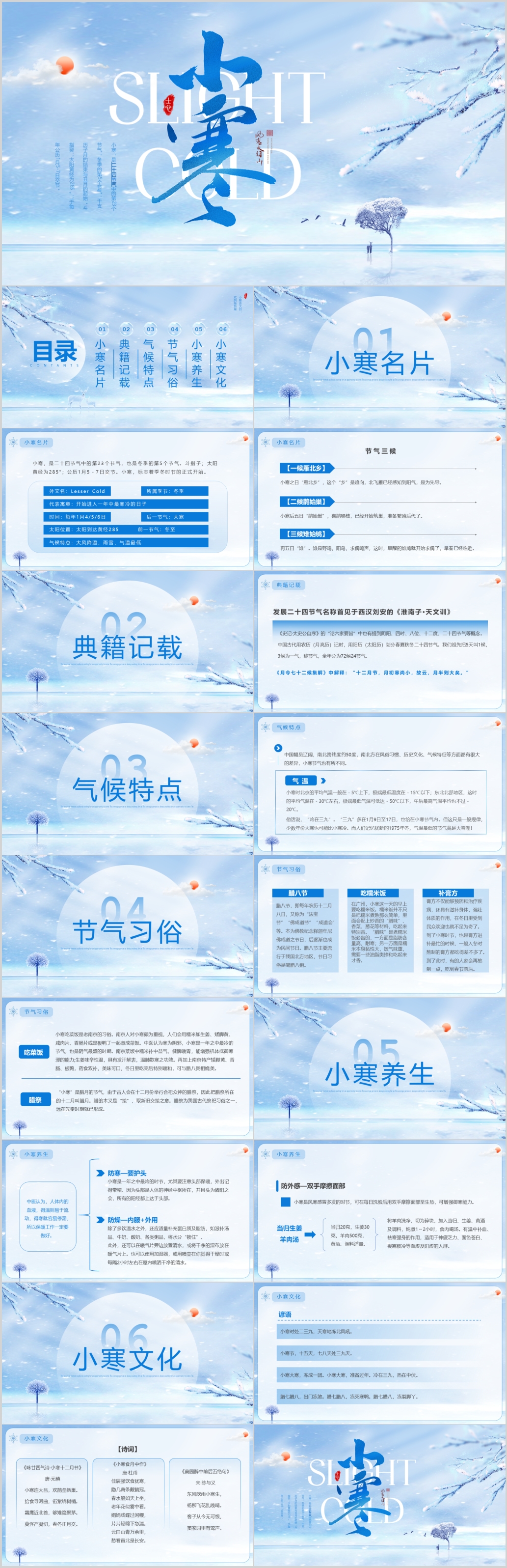 蓝色 二十四节气小寒ppt课件主题班会ppt模板