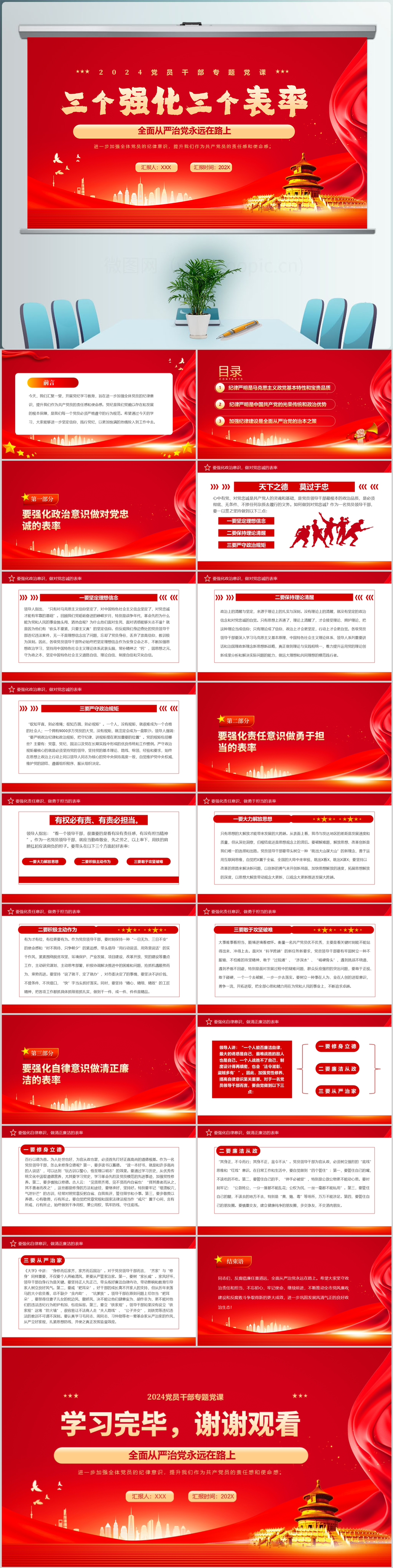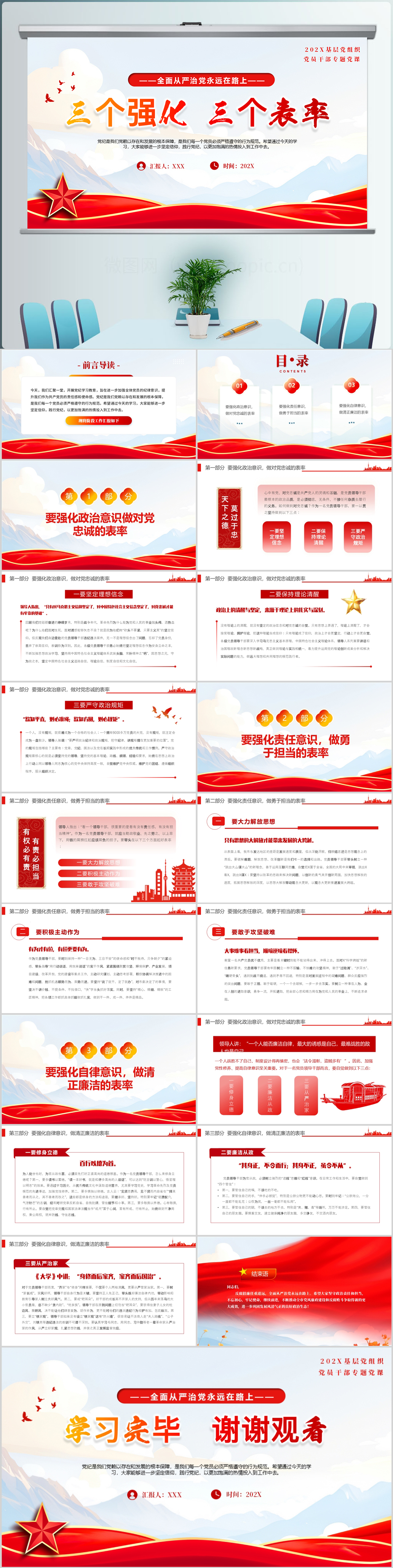 学习三个强化 三个表率廉洁纪律意识党员教育党课ppt模板