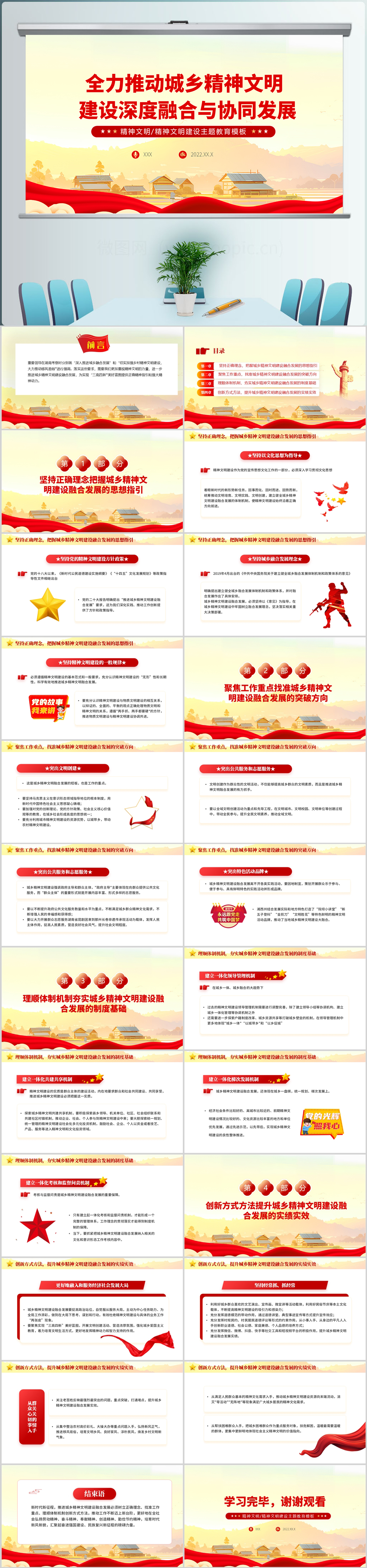 2024全力推动城乡精神文明建设深度融合与协同发展ppt模板