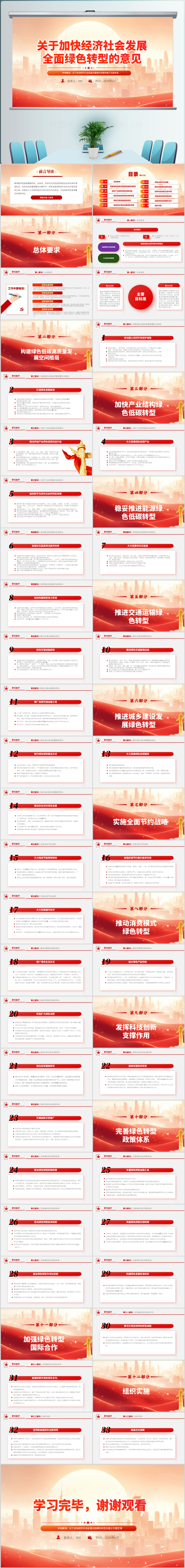 关于加快经济社会发展全面绿色转型的意见ppt模板(内含WORD演讲稿)