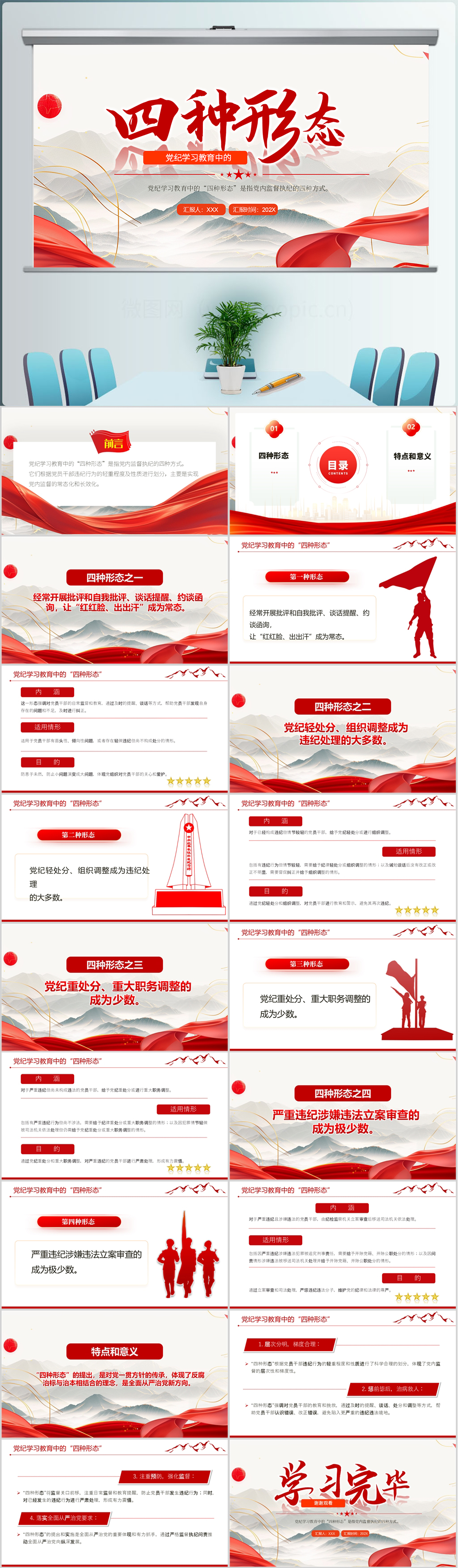 党纪学习教育中的“四种形态”四种方式党课ppt模板(内含WORD演讲稿)