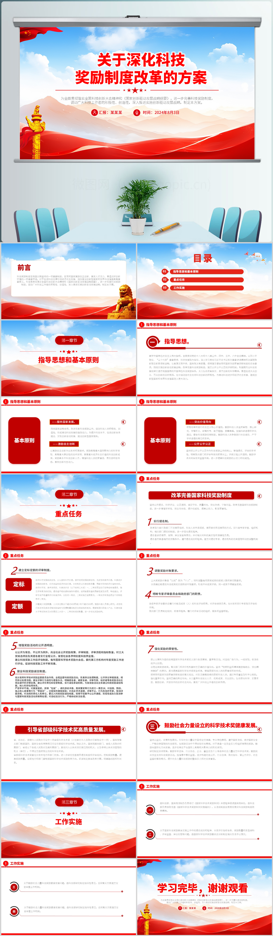 关于深化科技奖励制度改革的方案党课ppt模板(内含WORD演讲稿)