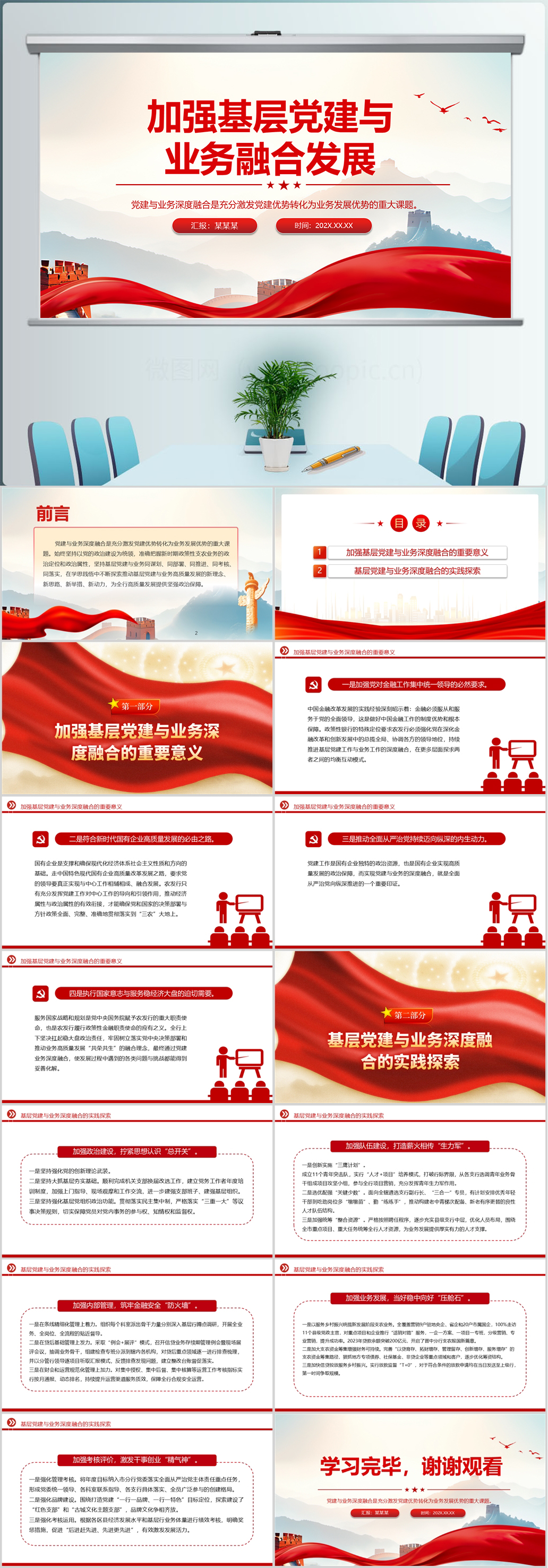 2024加强基层党建与业务融合发展专题党课PPT模板(内含WORD演讲稿)