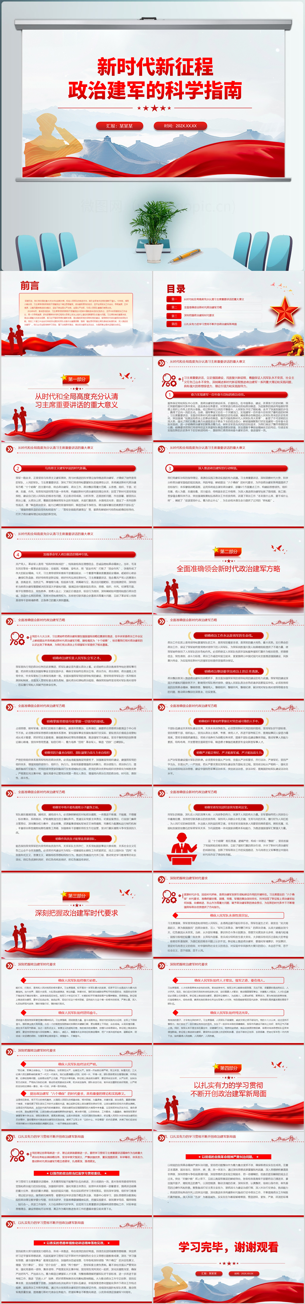新时代新征程政治建军的科学指南党课ppt模板(内含WORD演讲稿)