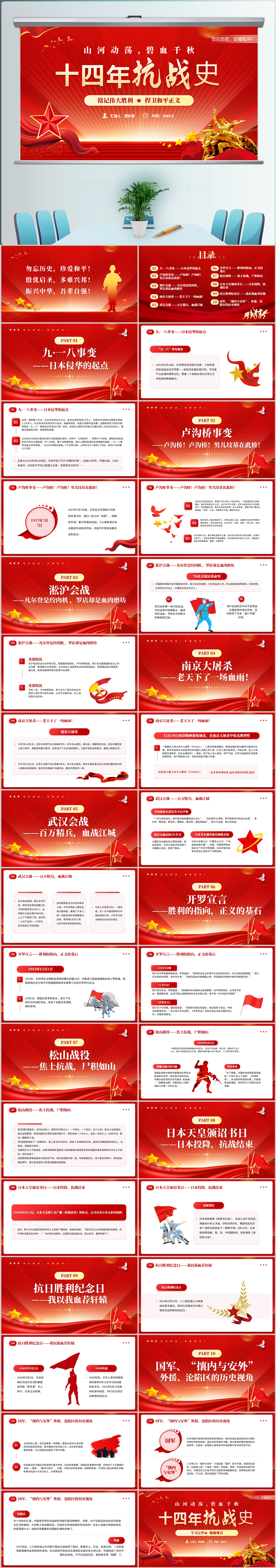 2024红色弘扬抗战胜利79周年学习十四年抗战史党课ppt模板