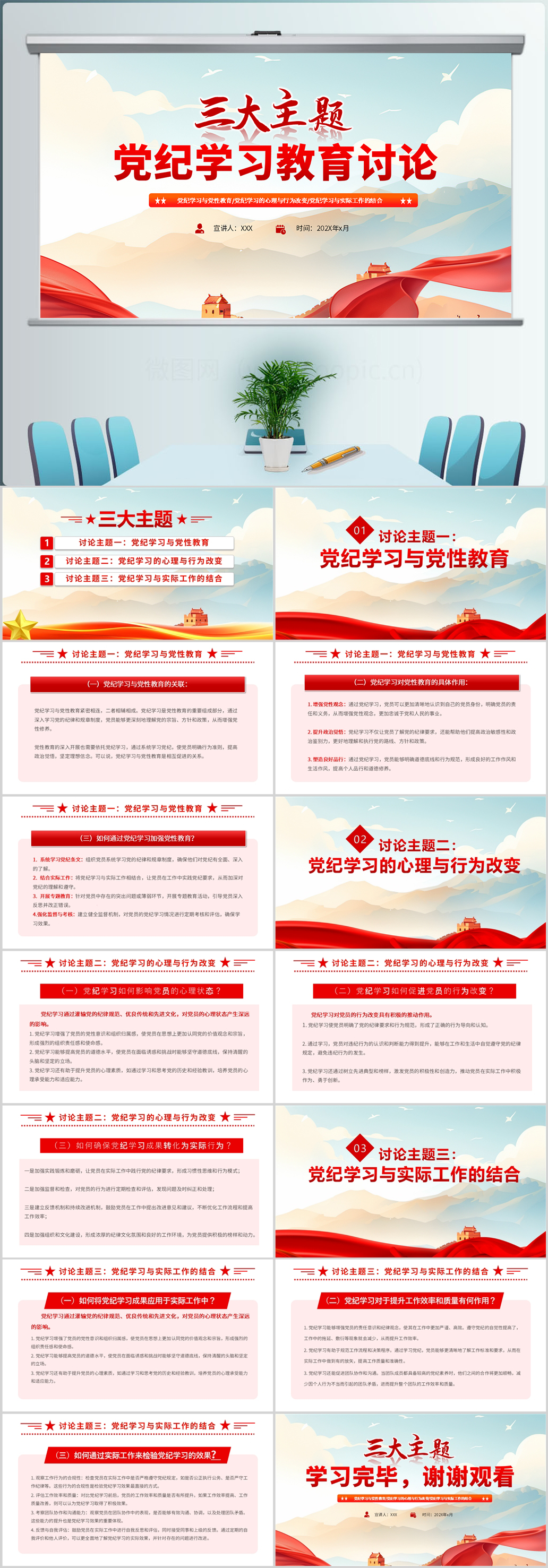 三大主题党纪学习教育讨论党课ppt模板(内含WORD演讲稿)
