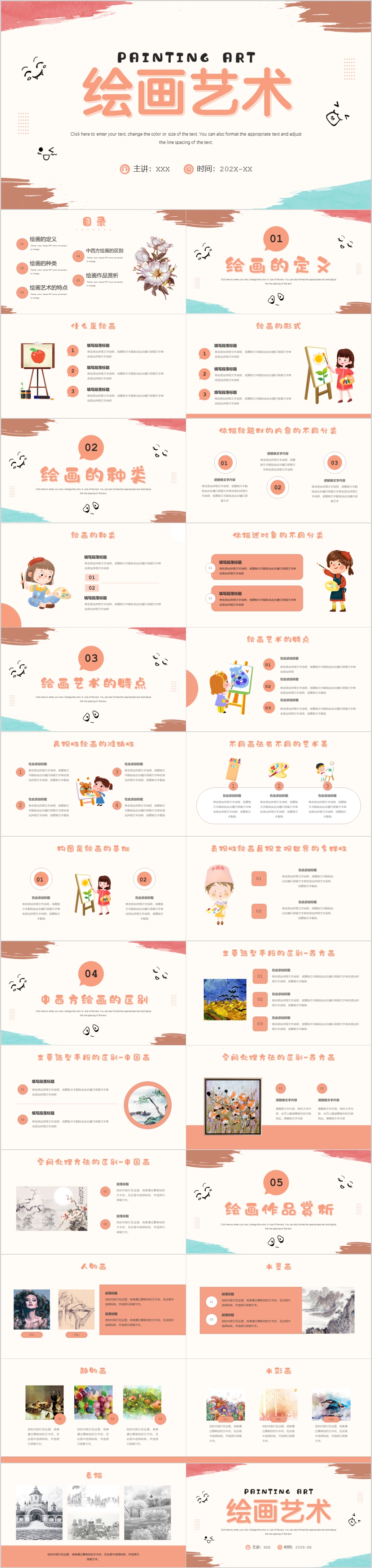 可爱儿童美术绘画彩绘描绘教育培训PPT模板