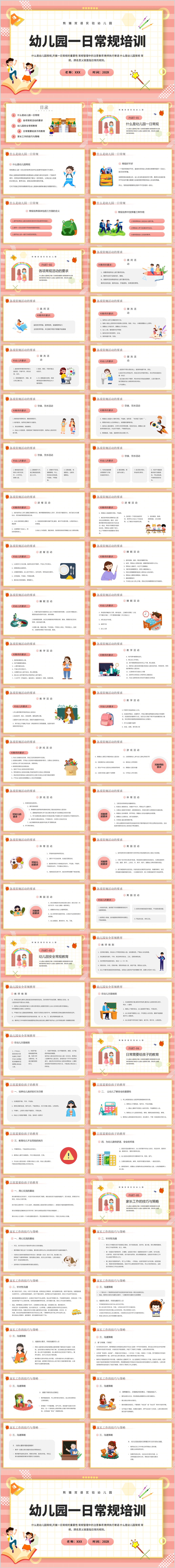 卡通幼儿园一日常规培训教育主题班会课件PPT模板