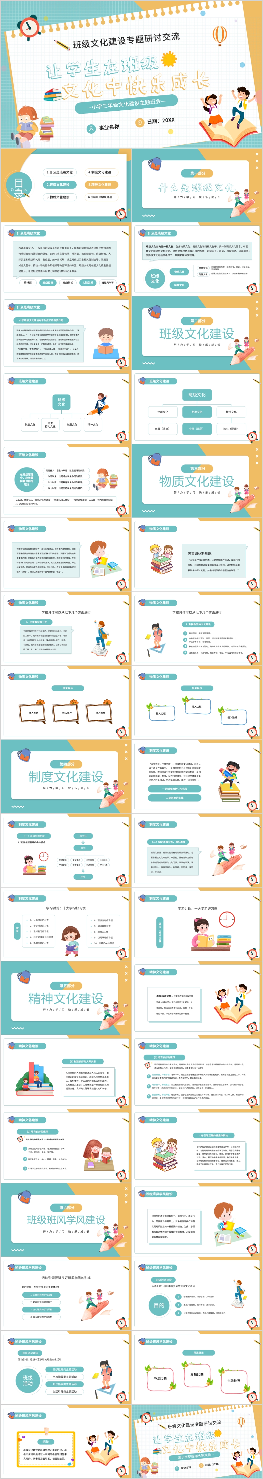 卡通中小学生班级班风文化建设主题班会课件PPT模板