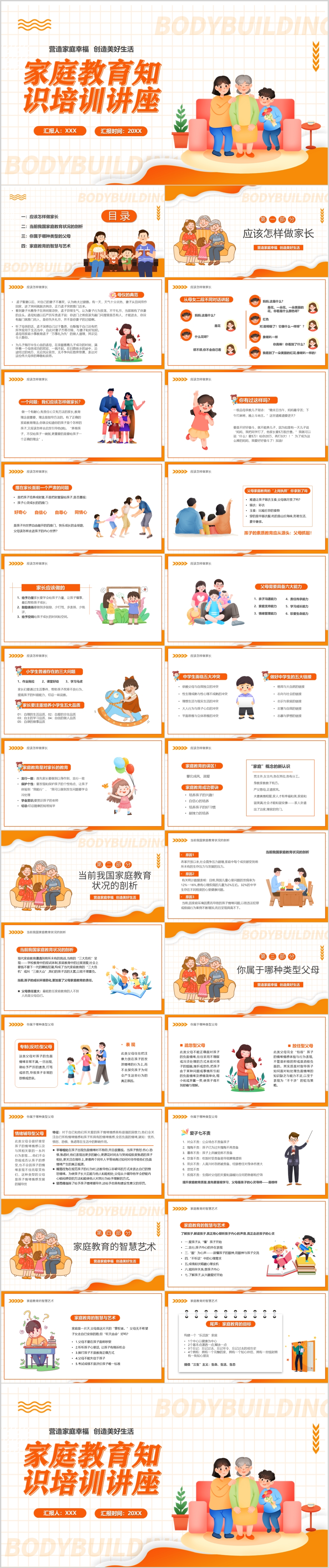卡通家庭教育知识培训讲座主题班会课件PPT模板