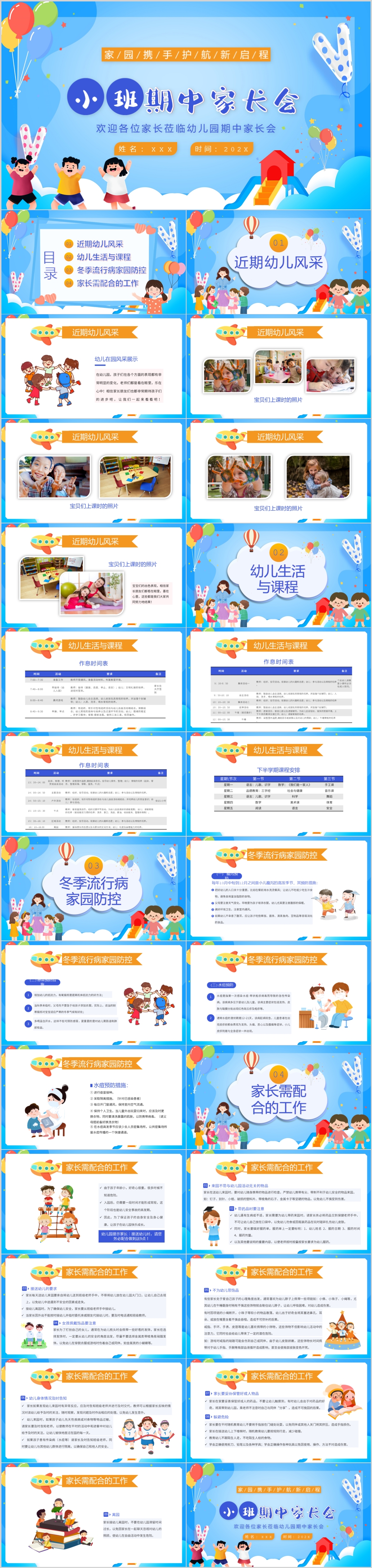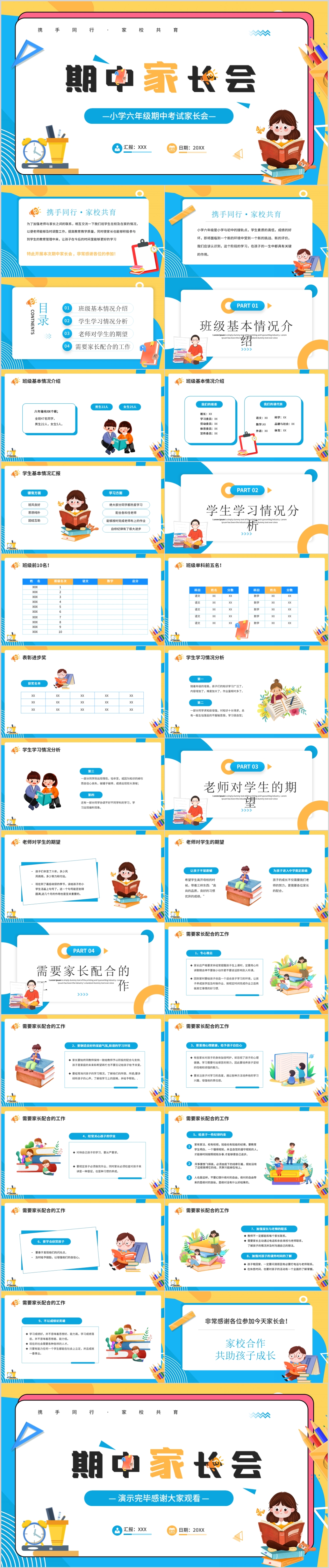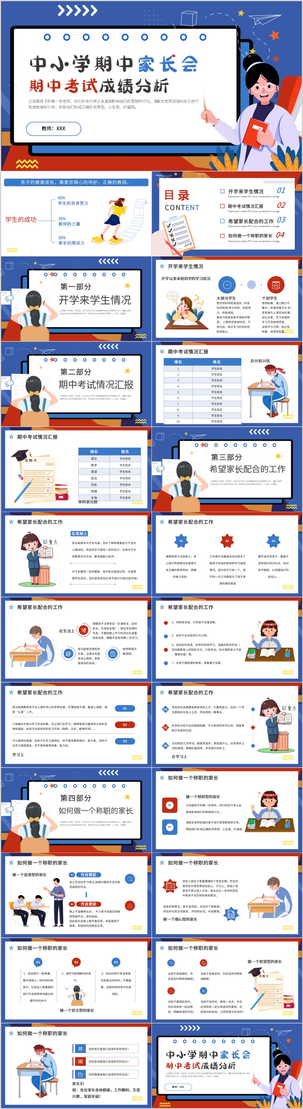 卡通幼儿园中小学生期中考试家长会主题班会课件PPT模板