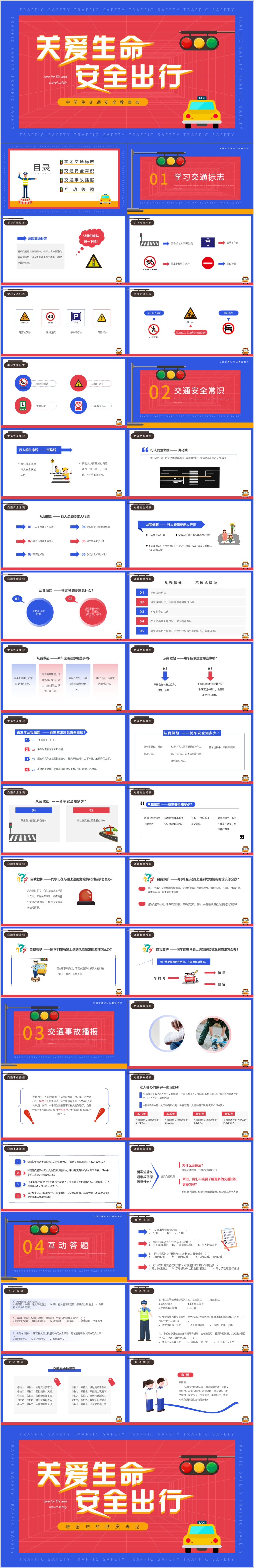 中小学生关爱生命交通安全出行教育主题课件ppt模板
