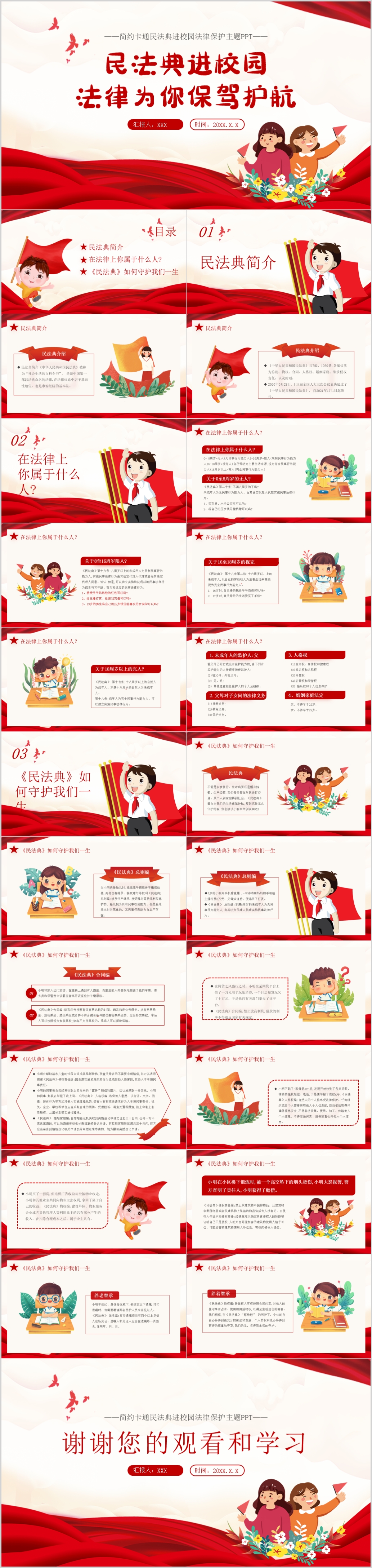卡通民法典进校园法律为你保驾护航主题班会课件PPT模板