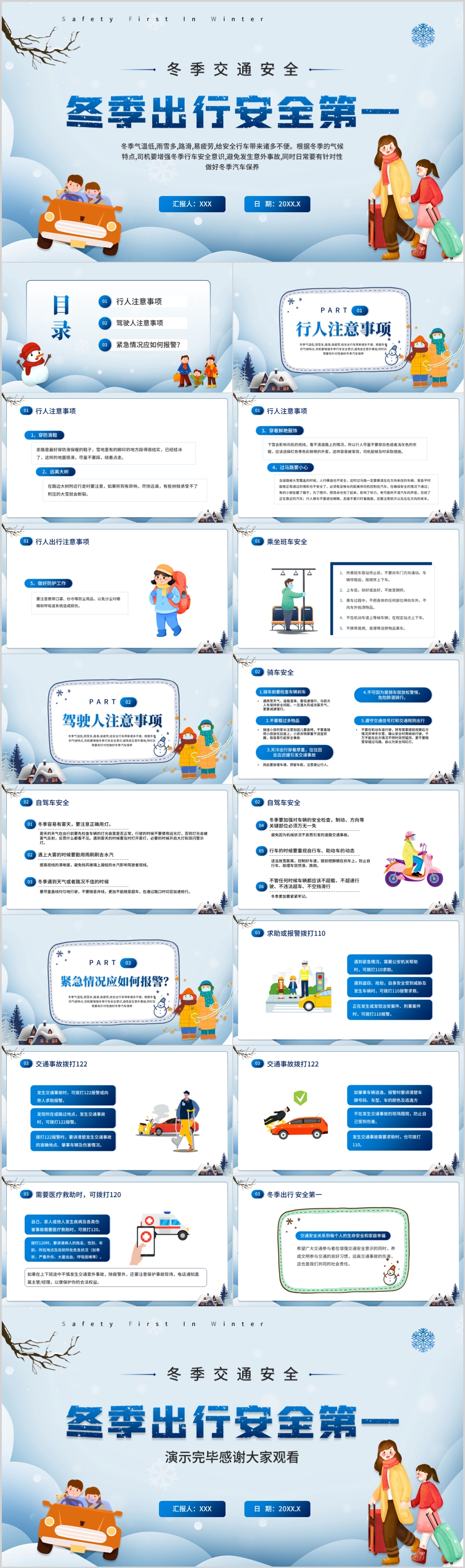 2022年冬季交通安全日冬季出行安全第一主题班会ppt模板